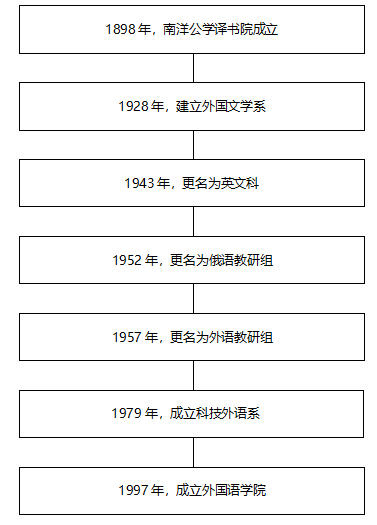新葡萄8883官网AMG官网外语教育历史悠久,发端于交通大学的前身“南洋公学”创立之初所设立的译书院——近代中国历史上第一所高校出版兼翻译机构。1928年成立外国文学系,1943年更名为英文科,1952年更名为俄语教研组,1957年更名为外语教研组,1979年成立科技外语系,1997年正式成立新葡萄8883官网AMG官网。