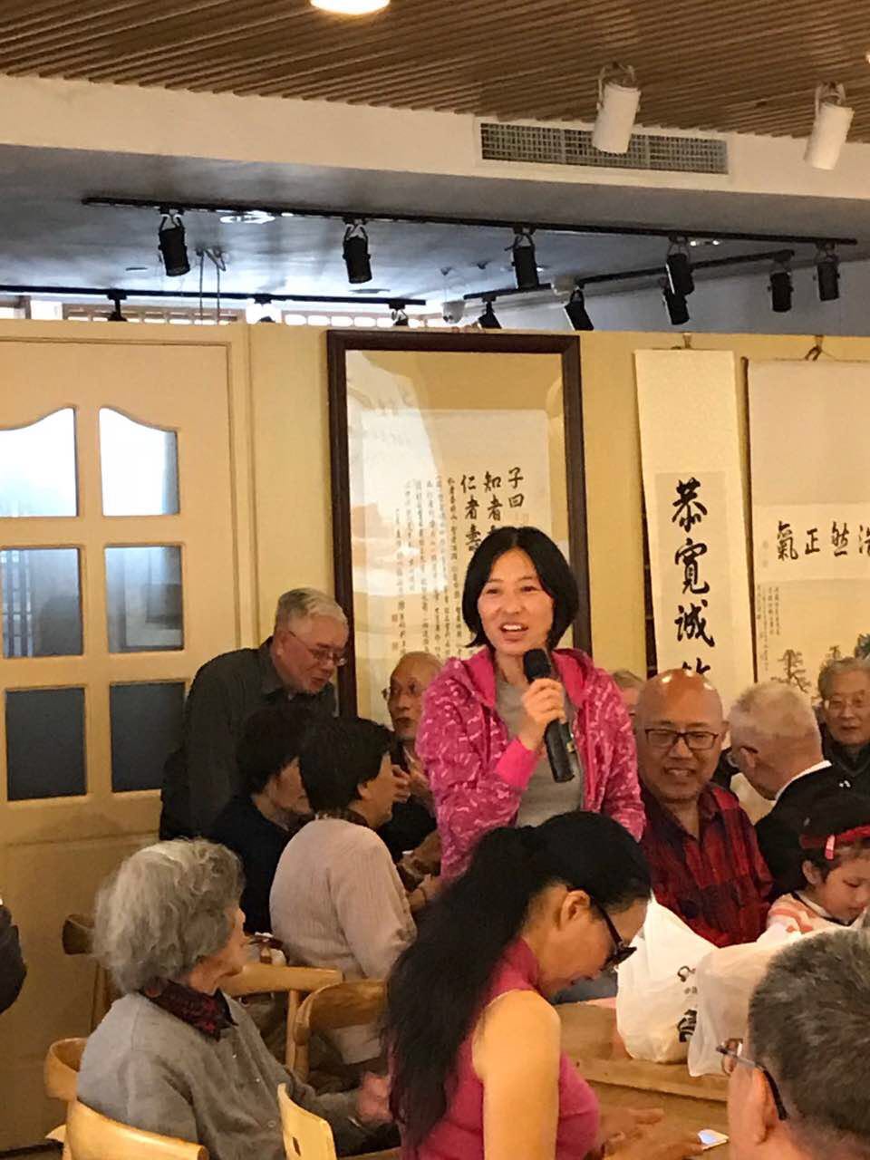 外国外语学院退休小组负责人陶红英首先发言。她首先感谢外院领导们对退休人员的关心和退管工作的支持;然后汇报了近一年来学院退管工作情况,尤其传达了退管工作喜报,例如徐竞雄老师日前获得交大喜迎十九大征文活动的最佳征文奖;最后她还鼓励老同志们要更加积极参与各类退休活动,让自己的老年生活更加丰富多彩。