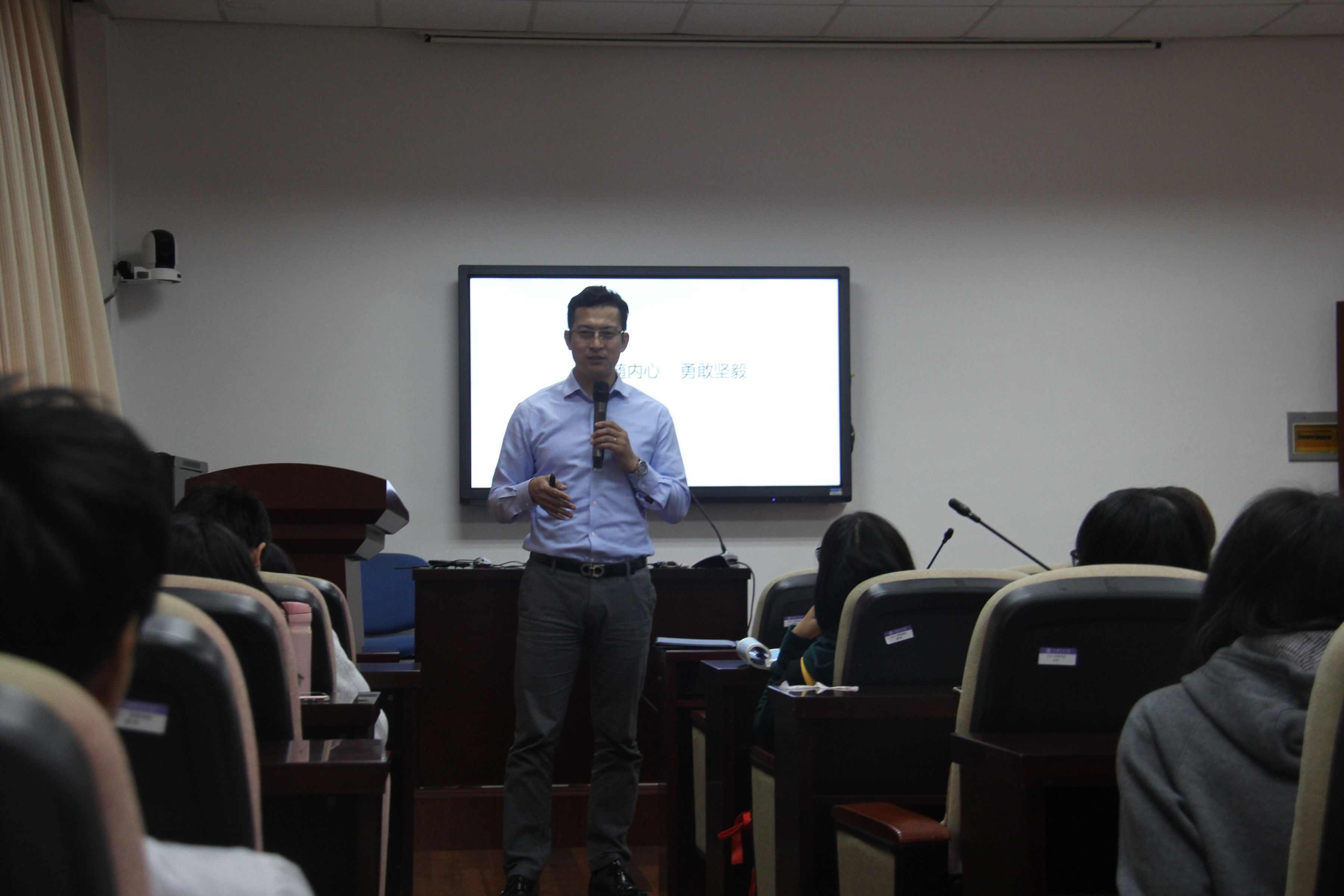 刘宇学长的分享分“跟随内心,勇敢坚毅”、“你要观世界,才有世界观”、“幸福是什么”三个部分与大家分享了自己的人生故事和经历,他不是讲高深的道理和自己创业经历,而是把自己用时间和青春所换的人生体验分享给大家。首先,人要追随自己的内心所想,不断在尝试中发现自己喜欢的工作,刘宇学长自己也经历了普华永道的审计工作、金融业的保险类工作,还体验了销售、市场、品牌、战略、互联网金融、高端教育等行业。他在其中的感悟包括“自己做了决定要勇敢承担后果”“无私的付出会得到加倍的回报”、“年轻人要给自己一定的宽容度,主动挑困难的事情来做”。