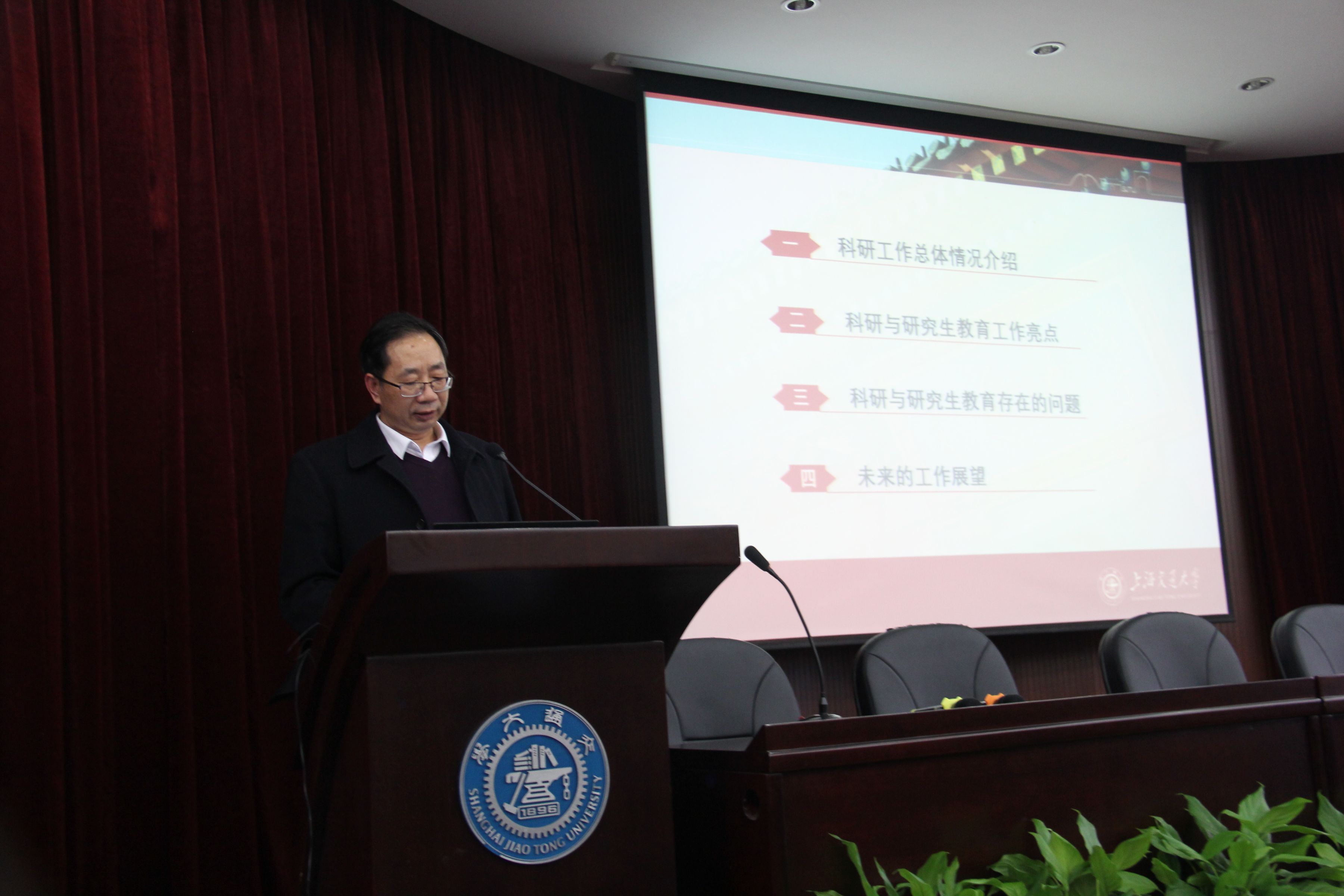 接着,由彭青龙副院长作题为“新葡萄8883官网AMG官网2013-2017年科研工作汇报”的主题发言。他从科研工作总体情况、科研工作和研究生教育亮点、存在问题及工作展望四个方面,用详实的数据资料进行了分析和解读。