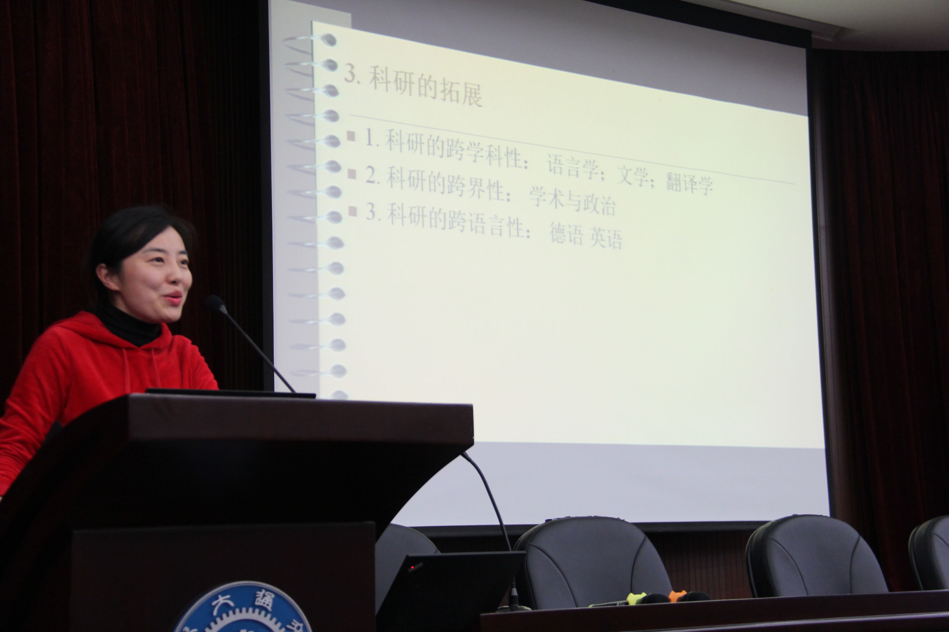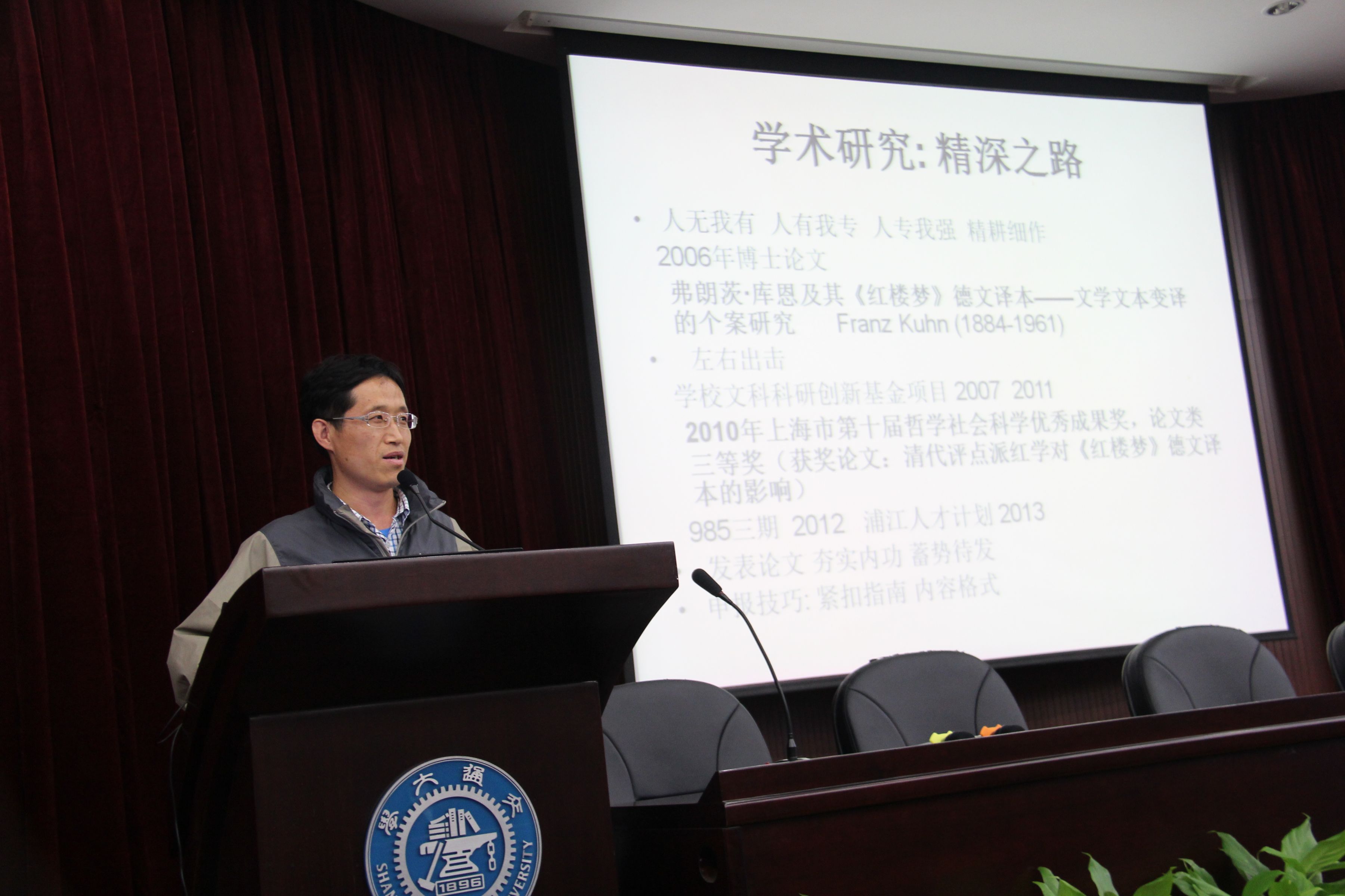 王金波从自身长期的科研经历为例,详细解读了“科研工作教训、经验和体会”。王老师十几年来一直致力于红楼梦译著研究,他的专心,细心和持之以恒的科研工作态度和出色的科研成果,给与会者留下了深刻印象。