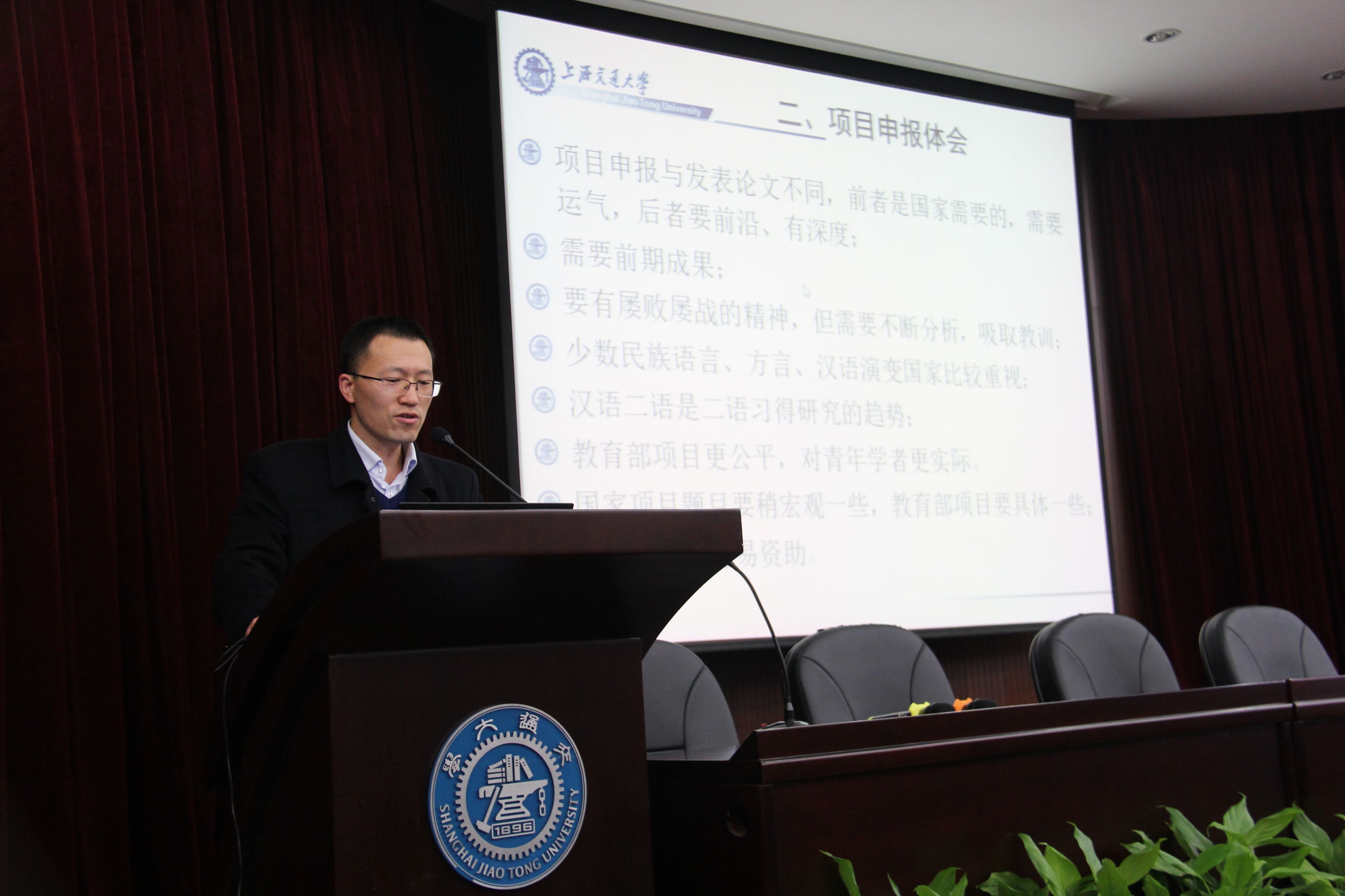常辉在“语言学项目申报经历与体会”的报告中,与大家分享了他的课题申报经历和体会。他的宝贵经验将有助于外院教师们提高申报成功率。