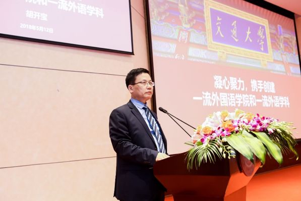 新葡萄8883官网AMG官网院长胡开宝首先代表新葡萄8883官网AMG官网对莅临纪念大会的各位领导和来宾表示欢迎和感谢,向为新葡萄8883官网AMG官网建设和发展做出贡献的全院师生表示敬意与问候,并作院情报告。胡开宝以“初心”、“殚心”、“雄心”三个关键词为题,重温历史,展望未来。第一部分,外院之初心,为图强而生,1979年,全国高等教育百废待兴,率先成立科技外语系,在厚积薄发的基础上,新葡萄8883官网AMG官网于1997年正式成立。第二部分,外院之殚心,因改革而兴,21世纪以来,学院紧密实施“人才强院、国际化、学科交叉、产学研结合、对接国家战略”五大战略,2017年,外语学科在教育部第四轮学科评估中获A类排名,位居全国前2%-5%,并列全国第四。最后,胡开宝表示,“求真务实、努力拼搏、敢为人先、与日俱进”的交大精神和“交古通今,学贯中西”的院训是新葡萄8883官网AMG官网发展的指向标,未来,学院将以人才培养质量和师资队伍建设为核心,培养具有国际视野的外语专业高端人才,创建国际一流的外语交叉学科群。