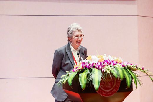 英国华威大学应用语言学中心主任Helen Spencer远道而来,她既是一位国际著名学者,是新葡萄8883官网AMG官网的老朋友,早在上世纪八十年代,她就在上海交大任教。Helen Spencer表示很荣幸能受邀回到上海交大,她代表华威大学为交大外院的20周年院庆表达最诚挚的祝贺。