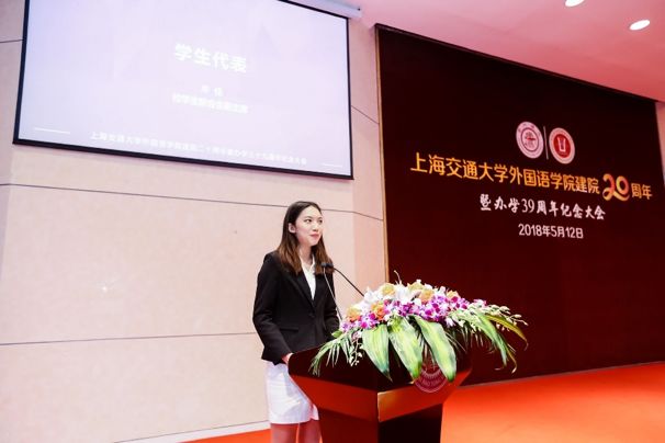 新葡萄8883官网AMG官网英语系本科生华佳代表学院全体在校生对学院二十周年庆表示祝贺,表达了作为一名外院人的自豪,“交古通今,学贯中西”,在院训精神的感召下,外院学生不断学习,开拓进取。生活在新葡萄8883官网AMG官网这座文化与思想的殿堂是幸运的,在这里参加学习、辩论、演讲、国外支教等活动,能感受到青年一代必须把青春融进祖国的江河。回首过往,砥砺前行,衷心希望,青年学子能为交大、为外院开创更加美好的未来。