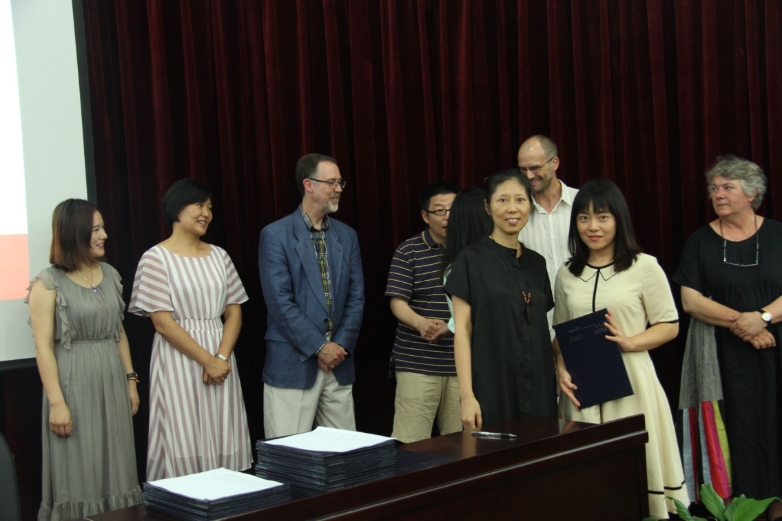 胡开宝、Penelope Mosavian、Neil Murray、郭亮以及来自云南农业大学的王晶老师分别在闭幕式上做了发言。教师学员们还为大家呈现了三场精彩的教学演讲,充分展现了四周以来的学习成果。Penelope Mosavian女士宣布了学员写作比赛结果,来自云南师范大学的杨翔鸥老师和黔南民族幼儿师范高等专科学校的李迪老师最终胜出,他们将获得廖胜昌先生的额外资助,前往英国华威大学进行为期一周的访学活动。