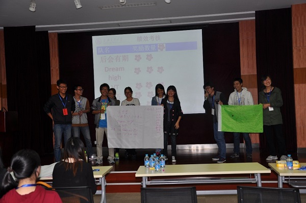 培训师通过按摩操、抓手等小游戏迅速活跃了活动现场氛围。随后培训师指导大家进行团队建设,通过讨论启发大家团队建设需要因素。广大研究生群策群力,在短时间内完成团队建设并进行了展示。