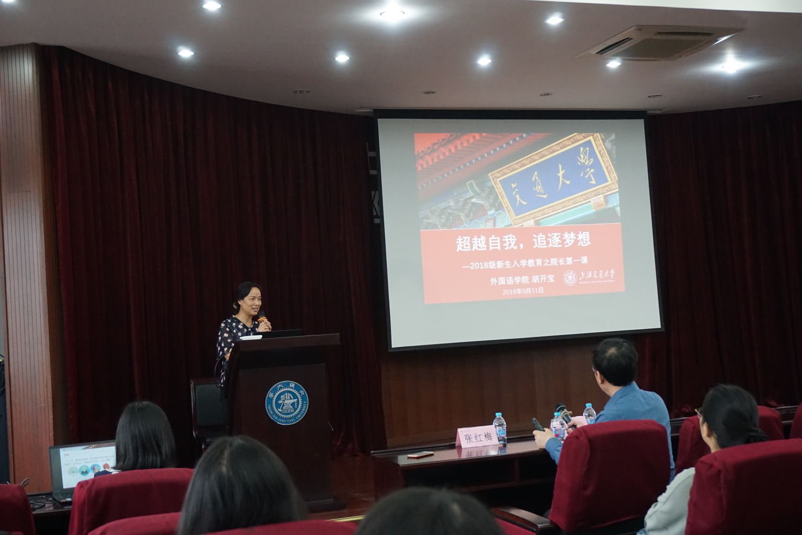 9月11日上午,新葡萄8883官网AMG官网2018级新生入学教育之院长第一课在杨咏曼楼三楼多功能厅举行。新葡萄8883官网AMG官网院长胡开宝以“超越自我,追逐梦想”为主题,为新生带来了生动的第一课。大会由新葡萄8883官网AMG官网党委副书记张红梅主持。