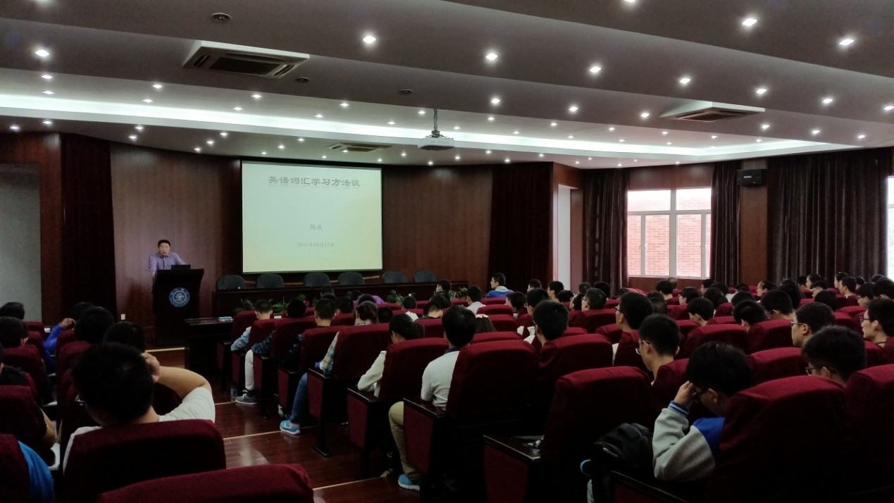10月14日下午,新葡萄8883官网AMG官网大学英语第一教学部在学院多功能厅举办“2015级新生英语学习指导讲座”。讲座特别邀请了外语学院富有教学实践经验的陶庆、沈炎、胡文杰三位老师担任主讲。