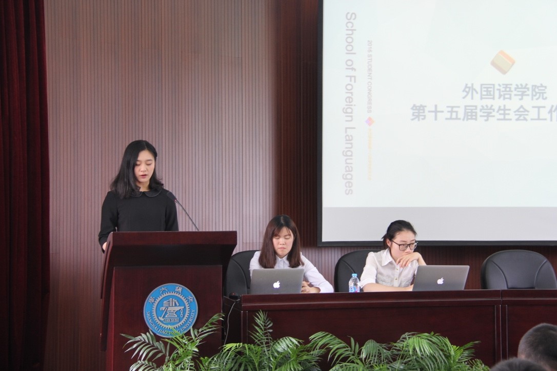 第十五届学生会主席徐佳璐宣读学生会评优名单,表彰过去一年中在学生会辛勤工作的部长及干事。