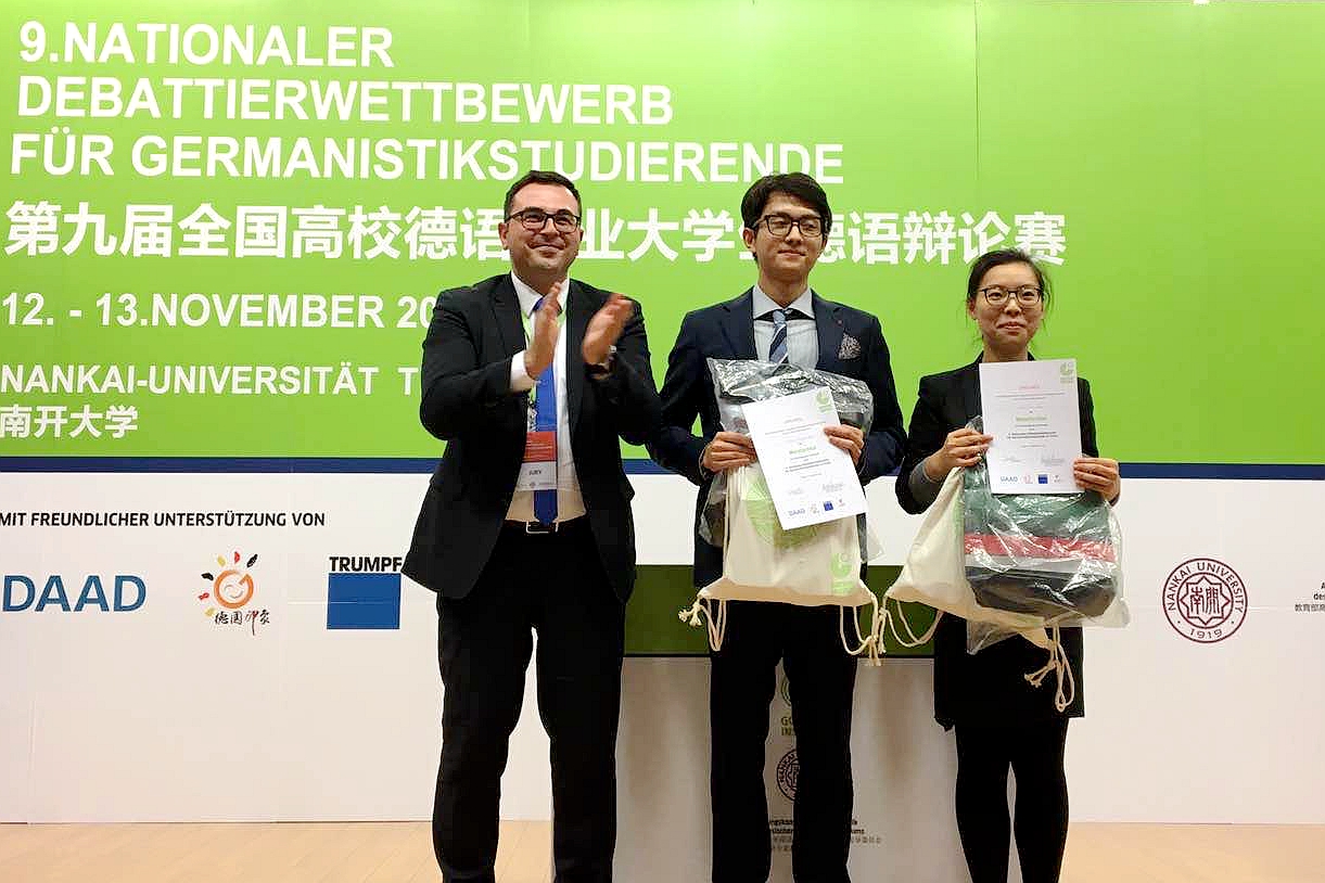 新葡萄8883官网AMG官网自参赛以来,历届均取得佳绩,这充分反映出交大德语专业优良的培养理念和教学质量。该赛事是由德国歌德学院和教育部高等学校德语专业教学指导分委员会联合举办、由德国DAAD(德国学术中心)等单位赞助的国内德语界级别最高、规模最大的权威专业比赛,是中国德语界的一大盛事。