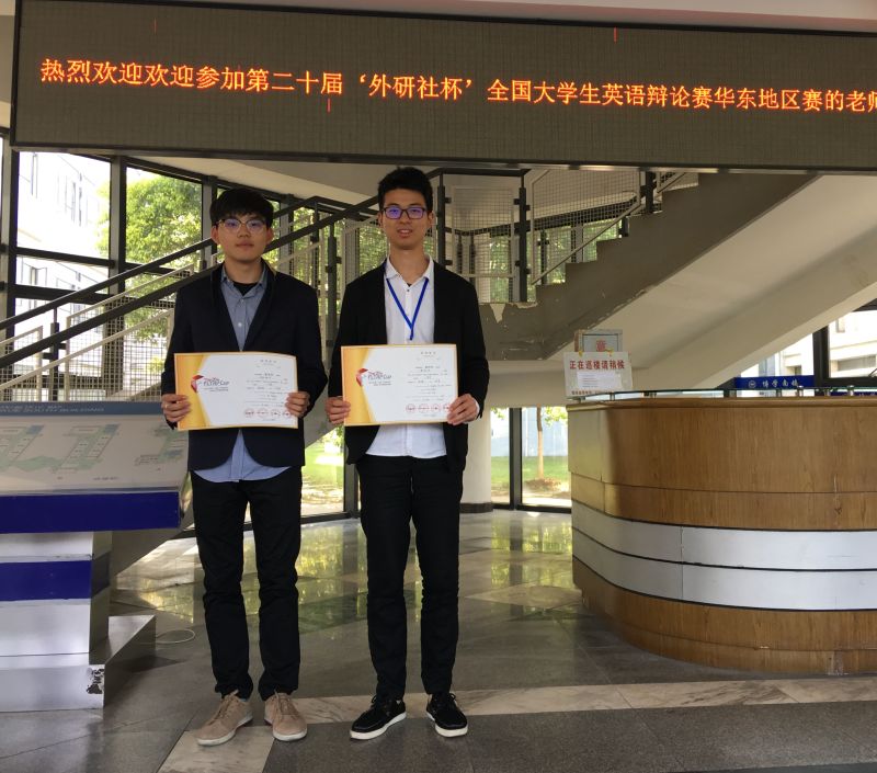 4月21日至4月23日,2017第二十届“外研社杯”全国大学生英语辩论赛华东地区赛在安徽大学隆重举行。在新葡萄8883官网AMG官网翻译系戴融融老师的指导下,新葡萄8883官网AMG官网叶宇宸同学和上海交大-巴黎高科卓越工程师学院俞昊波同学组成的队伍代表我校参加本次大赛。共计90余支来自上海、江苏、浙江、安徽、山东等各省市的高校代表队进行了为期3天的英国议会制英语辩论大赛。我校队伍表现出色,荣获华东赛区三等奖,戴融融荣获指导教师奖。
