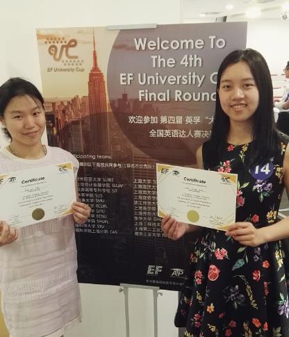 5月31日,第四届“英孚大学杯”比赛在霍特国际商学院上海校区隆重举行。来自新葡萄8883官网AMG官网、华东师范大学、上海财经大学、华东政法大学、浙江师范大学、南京工业大学等众多高校的优秀选手参加了此次大赛。在新葡萄8883官网AMG官网翻译系戴融融老师的指导下,来自医学院的朱诚和环境科学与工程学院的方妍在比赛中荣获冠军。