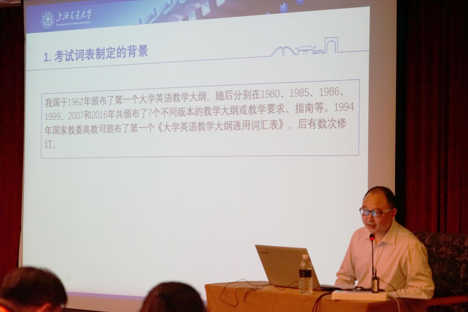 之后,新葡萄8883官网AMG官网教师赵勇以“校本测试词表研发”为主题进行了发言。他表示,上海交大英语水平测试对学生的词汇量提出了更高的要求,原有教学大纲词表已不能满足交大英语教学和测试的需要。