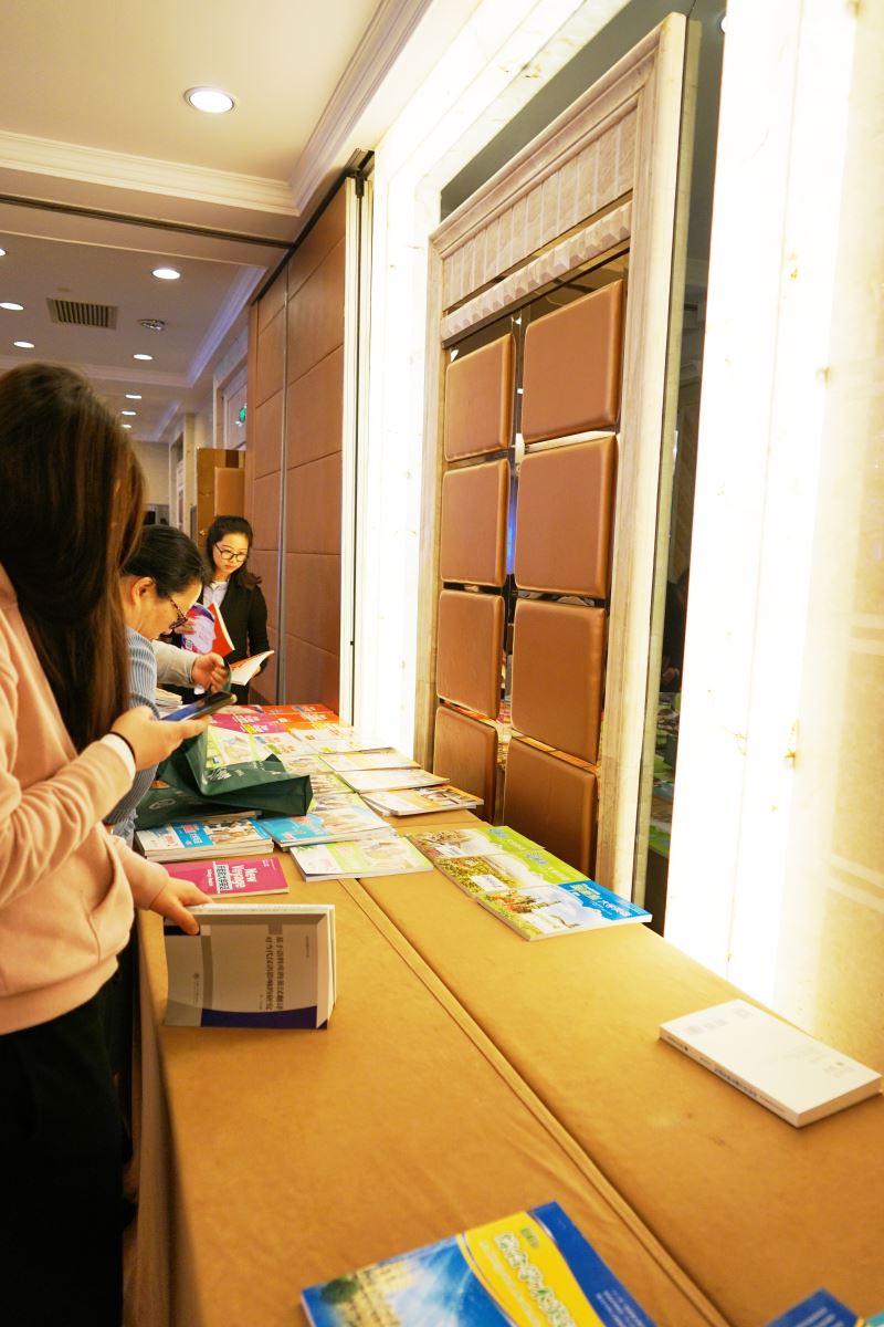会议精彩瞬间(教师们挑选并获赠由上海交大出版社出版的大学英语类图书、教师们与常辉讨论大学英语教学的内容、发言结束后教师们提问交流)