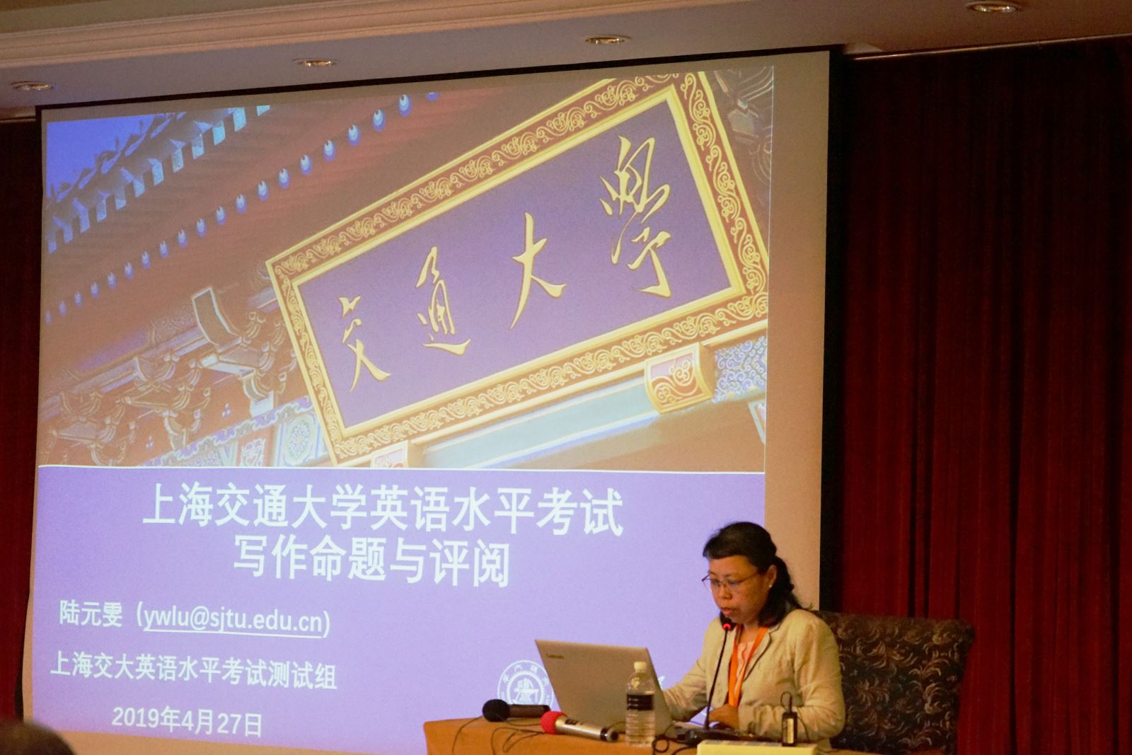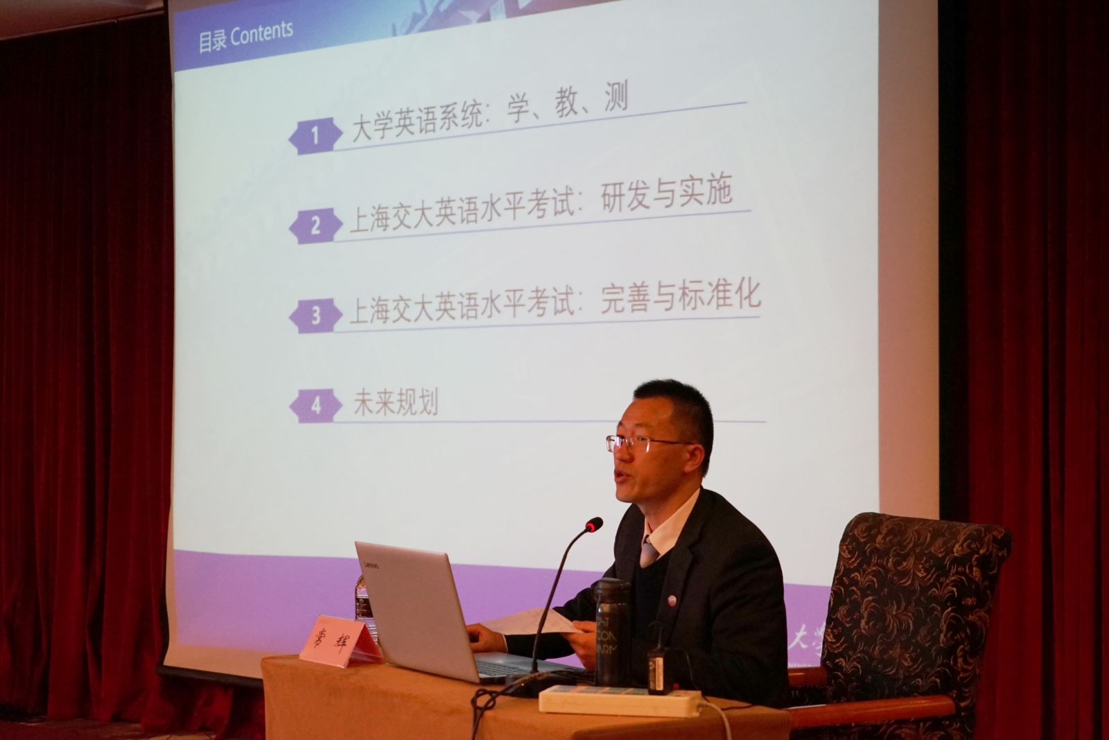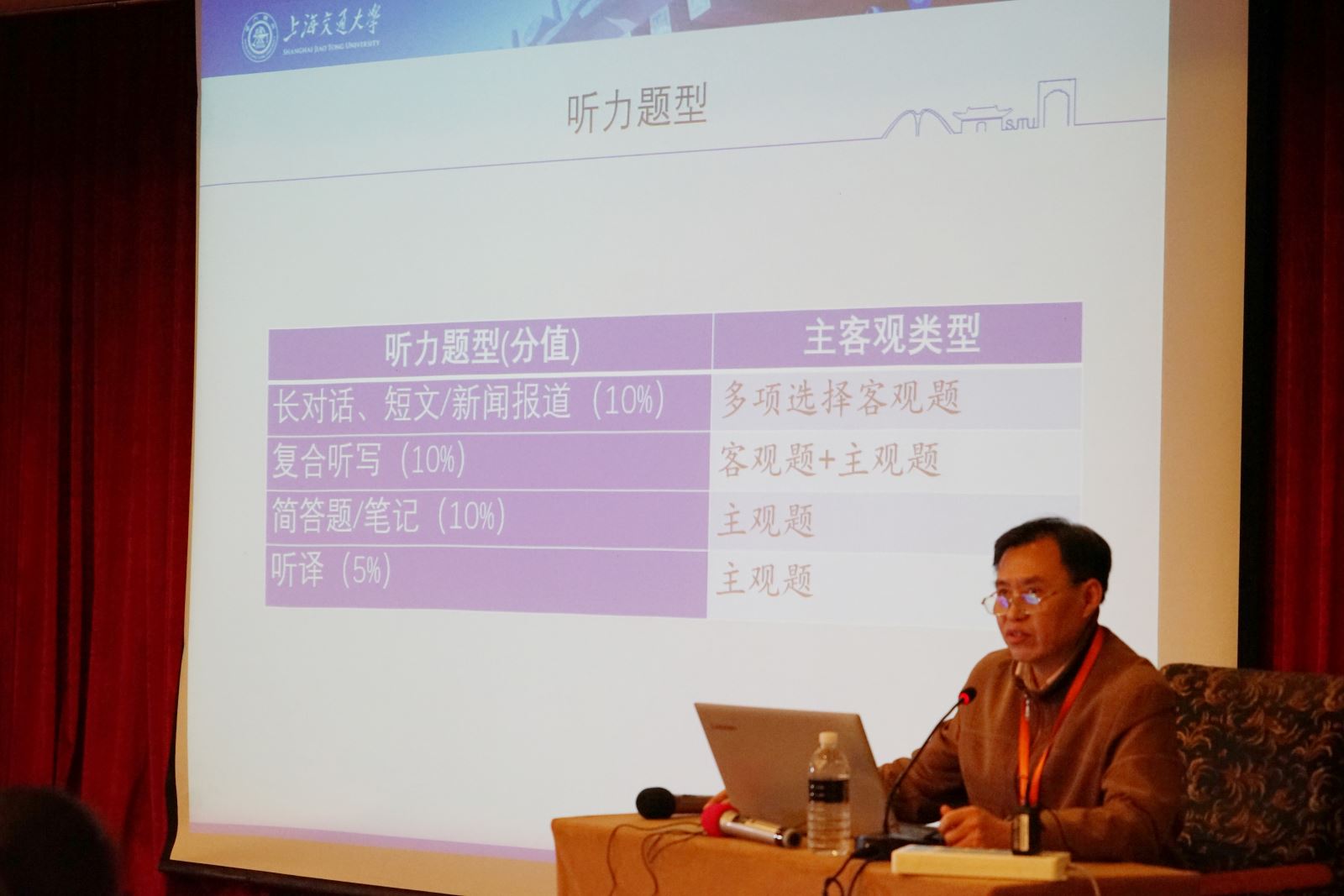 27日下午,上海交大四位命题组的专业教师丁兴华、何琼、陆元雯和叶菊仙分别从上海交大水平考试的听力、阅读、写作、口语四个方面的命题原则与试题命制进行了介绍发言,并举出了各类真题和实例,加深了教师们对于命题原则等方面的理解,促进了教师们对命题的思考。