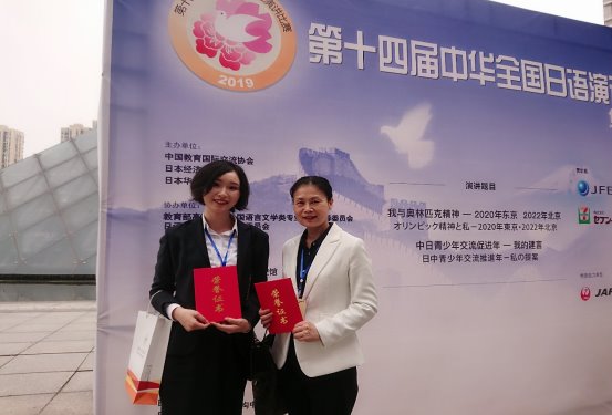 在赛前准备中,日语系的陈露副教授、金文峰副教授和外籍专家山田高志郎老师带领学生进行了高质量的冲刺训练。王致萱的演讲不仅获得了评委老师的肯定,也得到了在场观众、各校选手以及指导教师的赞许,最终荣膺一等奖。