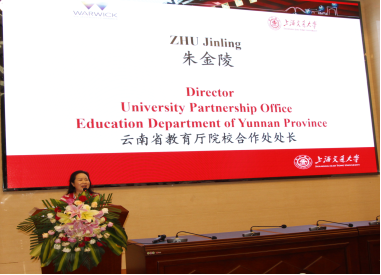 朱金陵代表云南省教育厅致辞,她表示自1998年云南省与上海交大合作以来,双方结下了深厚的友谊。感谢上海交大多年来对云南省的帮助,此次项目落地云南大理,正是省校双方良好合作的结果,也是惠及西部地区及云南省教育事业的一项重要举措。希望上海交大未来继续支持云南省及西部地区教育事业发展,发挥学校优势,帮助云南省人才队伍建设。