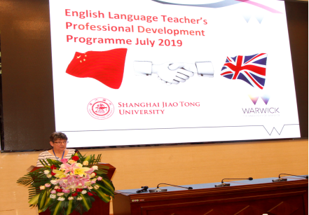 资深教师Joanna Watson代表华威大学和上海交大的授课教师团队发言,希望学员能全心投入未来一个月的学习,顺利完成全期培训课程。