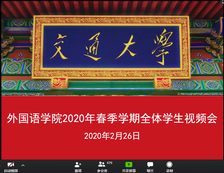 视频会议在提问环节后圆满结束,同学们纷纷在讨论界面表达了感谢。本次会议是外语学院首次通过线上形式举办的全院学生大会,在疫情防控的特殊时期及时到位地向每一位学生介绍了新学期的工作安排,解答了学生们最关注的各种问题,能有效提高学生对线上教学的认识和重视程度,帮助学生远程调整好心理状态和学习态度,迎接新学期的学习任务。衷心期待全院师生共同努力,统筹做好疫情防控和教书育人工作。
