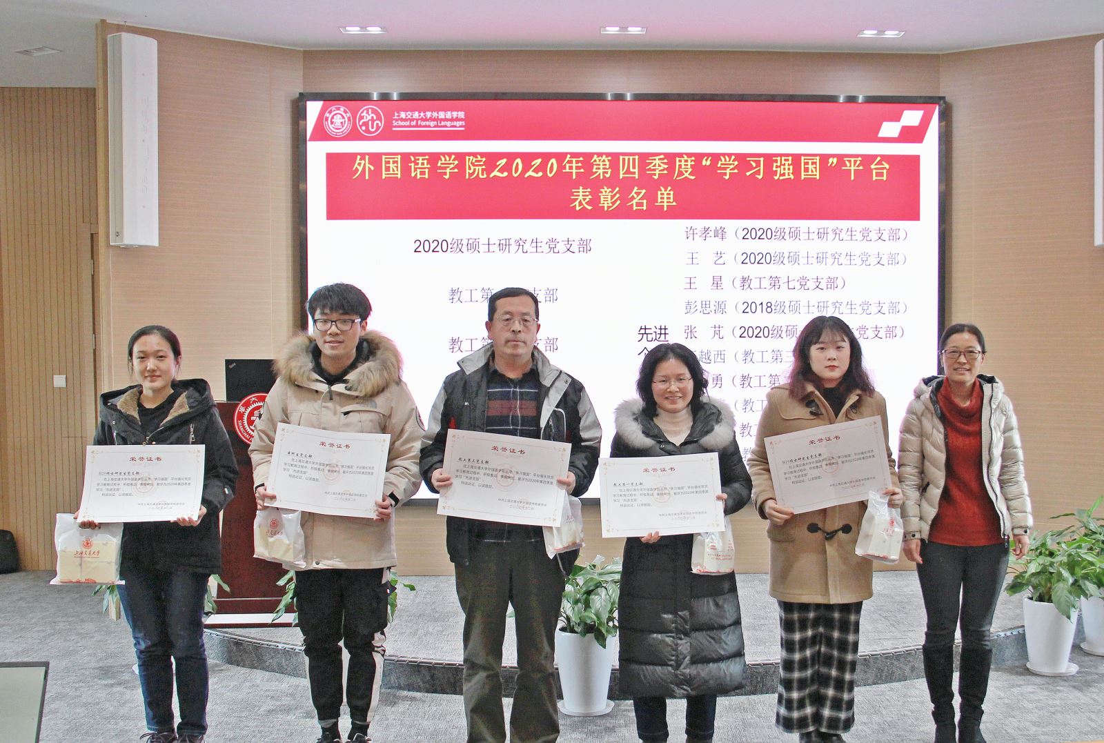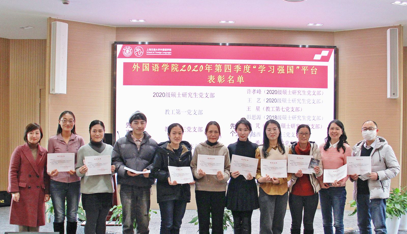 新葡萄8883官网AMG官网荣获学校2020年第四季度“学习强国”先进单位,2020级硕士研究生党支部和本科生党支部荣获学校先进党支部,教工党员王星及学生党员许孝峰、王艺、彭思源、张芃等荣获学校“学习达人”荣誉称号。