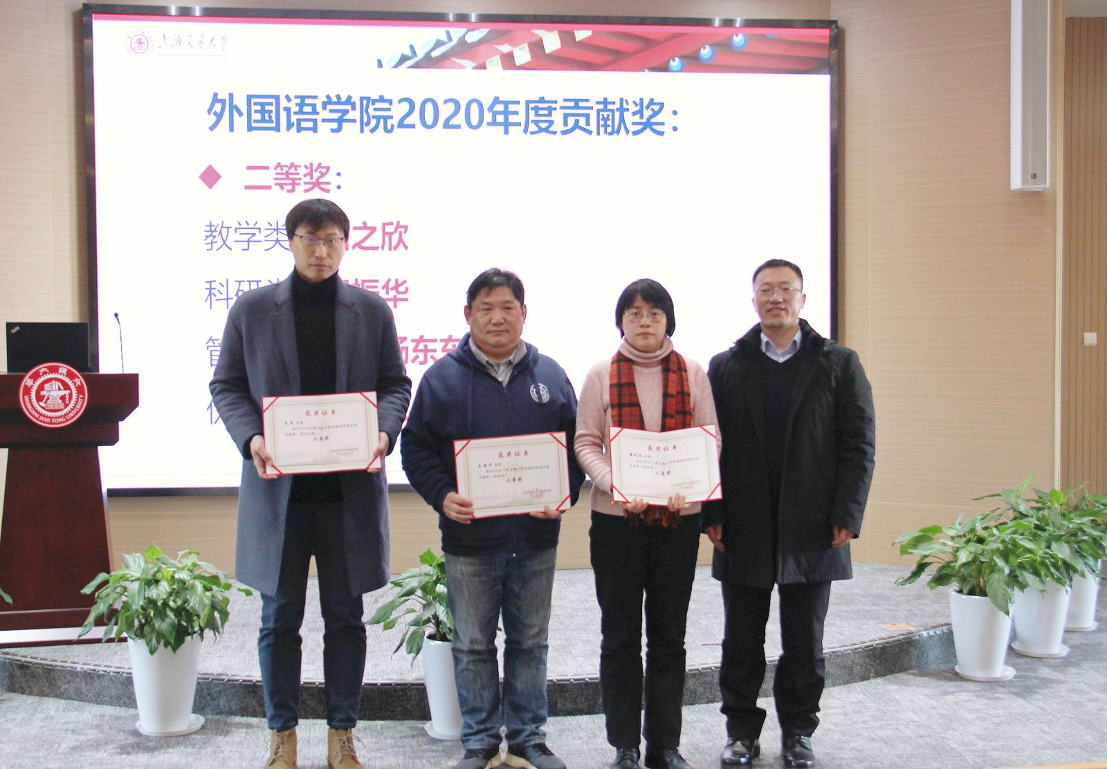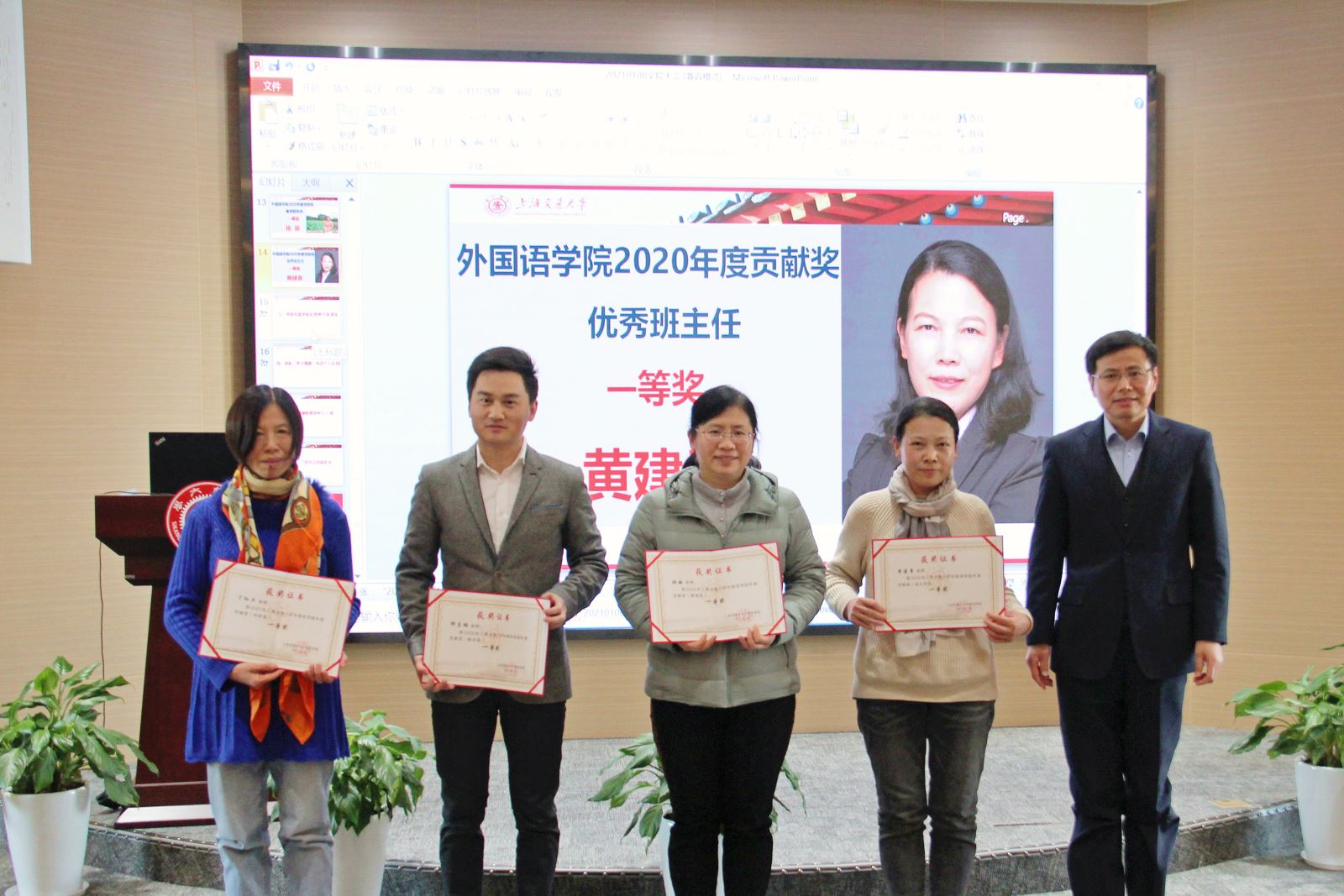 为表彰2020年在教学、科研、管理服务、班主任等一线工作做出突出贡献、并起到示范引领作用的先进教师,会上举行了学院年度贡献奖表彰颁奖仪式。