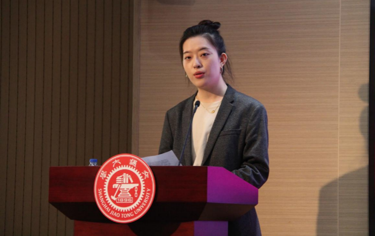 创译大赛一等奖获得者,同济大学刘一璇发表获奖感言。她向与会老师及同学展示获奖作品,分享创译思路,强调受众的重要性,同时要加强品牌形象的建立。