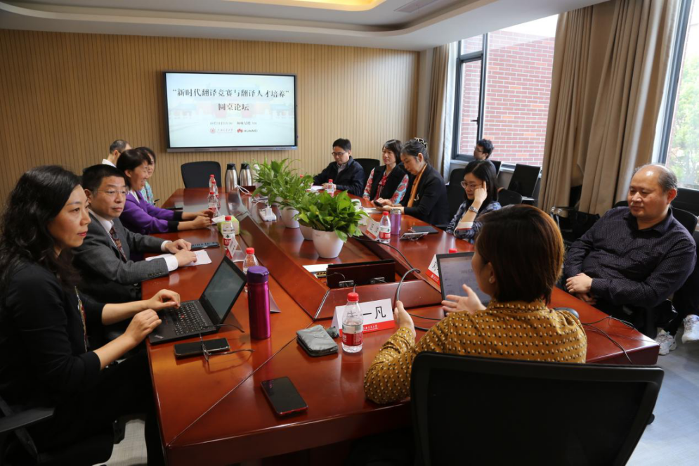 下午举办“新时代翻译竞赛与翻译人才培养”圆桌论坛 ,论坛由朱一凡主持。