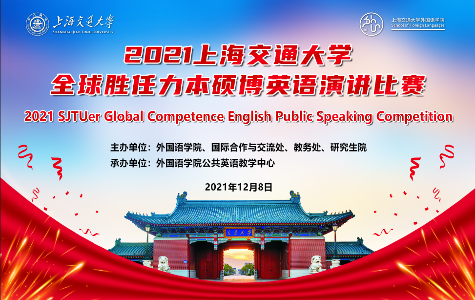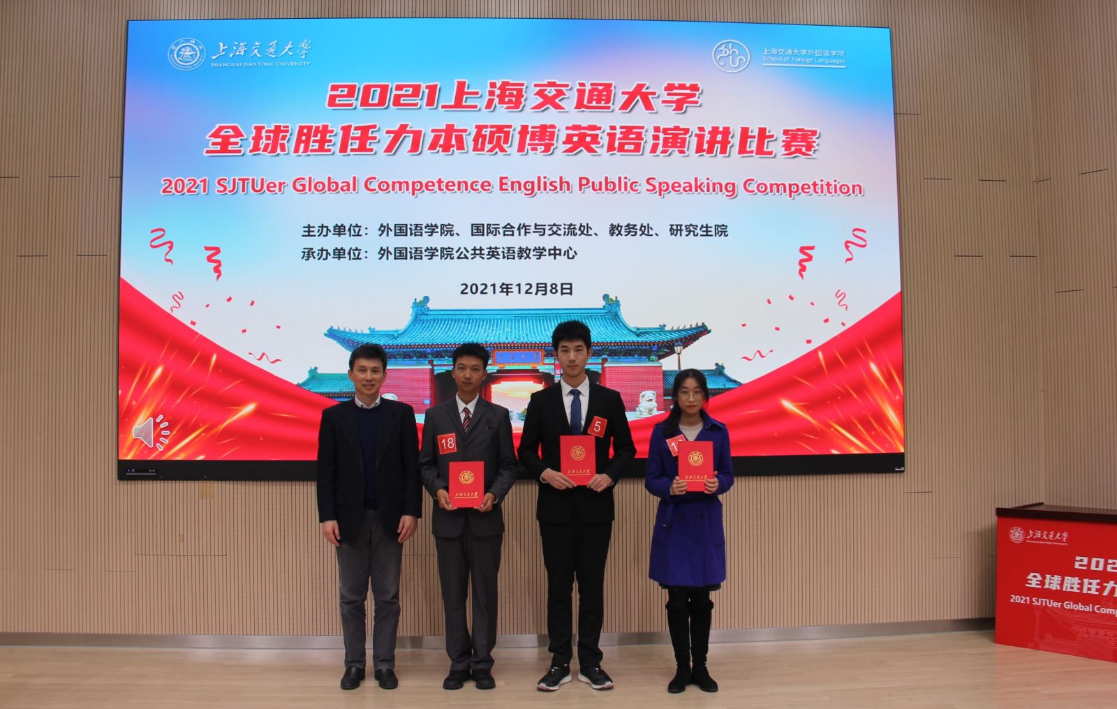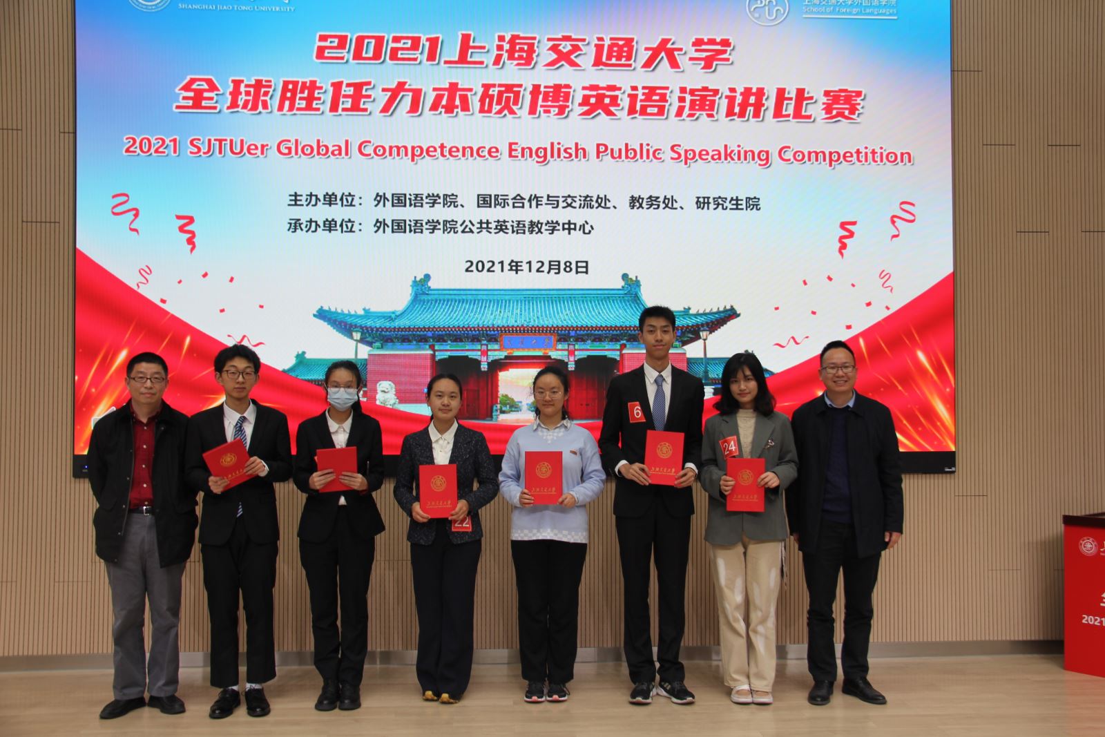 2021年12月8日下午,由新葡萄8883官网AMG官网、国际合作与交流处、教务处及研究院联合主办的首届新葡萄8883官网AMG官网“全球胜任力”本硕博英语演讲比赛在闵行校区东中院隆重举行。新葡萄8883官网AMG官网副教务长吴静怡、国际合作与交流处处长罗鹏、研究生院院长王亚光、新葡萄8883官网AMG官网教务处副处长徐振礼、国际合作与交流处副处长郭亮、陈科、新葡萄8883官网AMG官网党委书记丁剑、常务副院长常辉、新葡萄8883官网AMG官网副院长陶庆、副书记朱一凡应邀出席大赛现场。