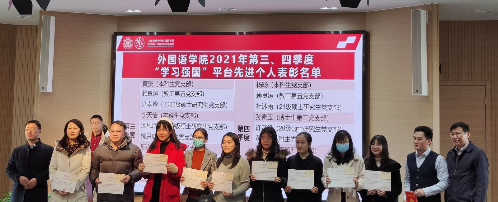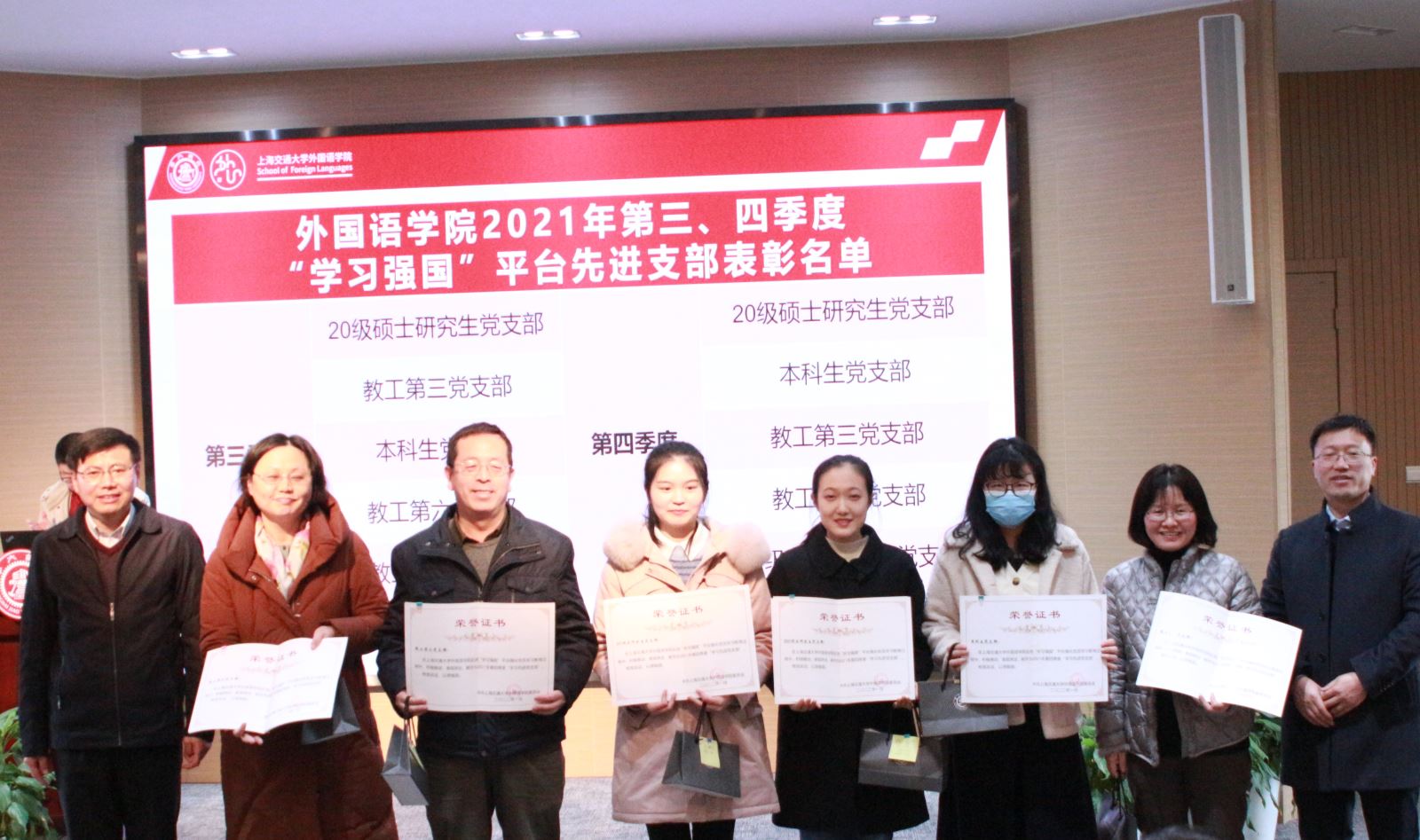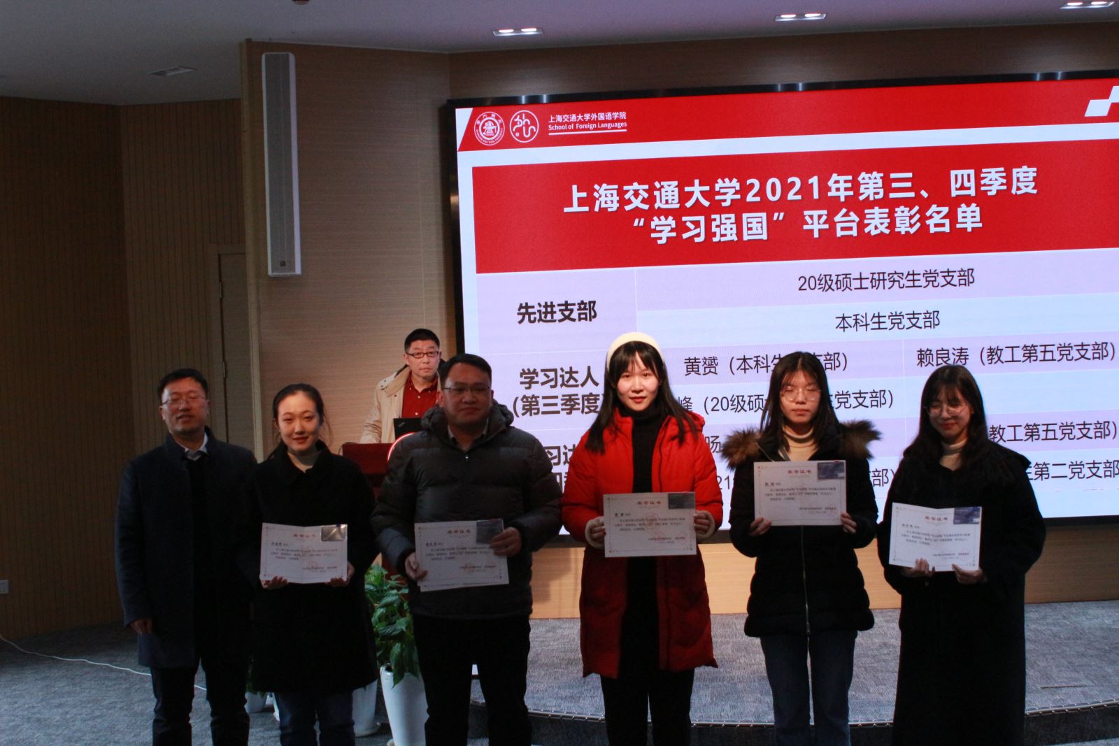 新葡萄8883官网AMG官网党委书记丁剑宣读了学院关于2021年第三、第四季度“学习强国”平台学习先进表彰决定。2021年学院深入学习贯彻习近平总书记在党史学习教育动员大会上的重要讲话精神,创新教育载体形式,持续推进学习强国学习平台与党史学习教育的深入结合,党员学习成效显著。