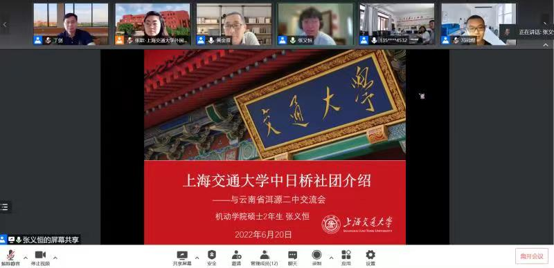 新葡萄8883官网AMG官网中日桥社团社长、机动学院硕士生张义恒同学就社团基本情况、定位发展以及初步交流设想进行了介绍。他表示,成立中日桥社团意在为中日高校青年搭建交流平台,增加彼此对语言、文化等的了解和理解,开阔学生的国际化视野,提升当代青年的国际胜任力。在此理念之下,社团协办了中日学生论坛、中日青年精英营等一系列校级国际交流活动。与此同时,社团成员们很高兴能够与洱源二中的同学们开展交流活动。他介绍到,社团正在筹备“新葡萄8883官网AMG官网第二课堂”活动,可以作为双方开展交流的开端,届时欢迎洱源二中同学们线上一同参与体验。最后,他代表社团表态:社团将以日本文化分享为主,在日语课程之余提供切身体会日本文化的机会;以日语学习交流为辅,通过学习经验的分享促进日语学习,助力洱源二中同学日语学习。