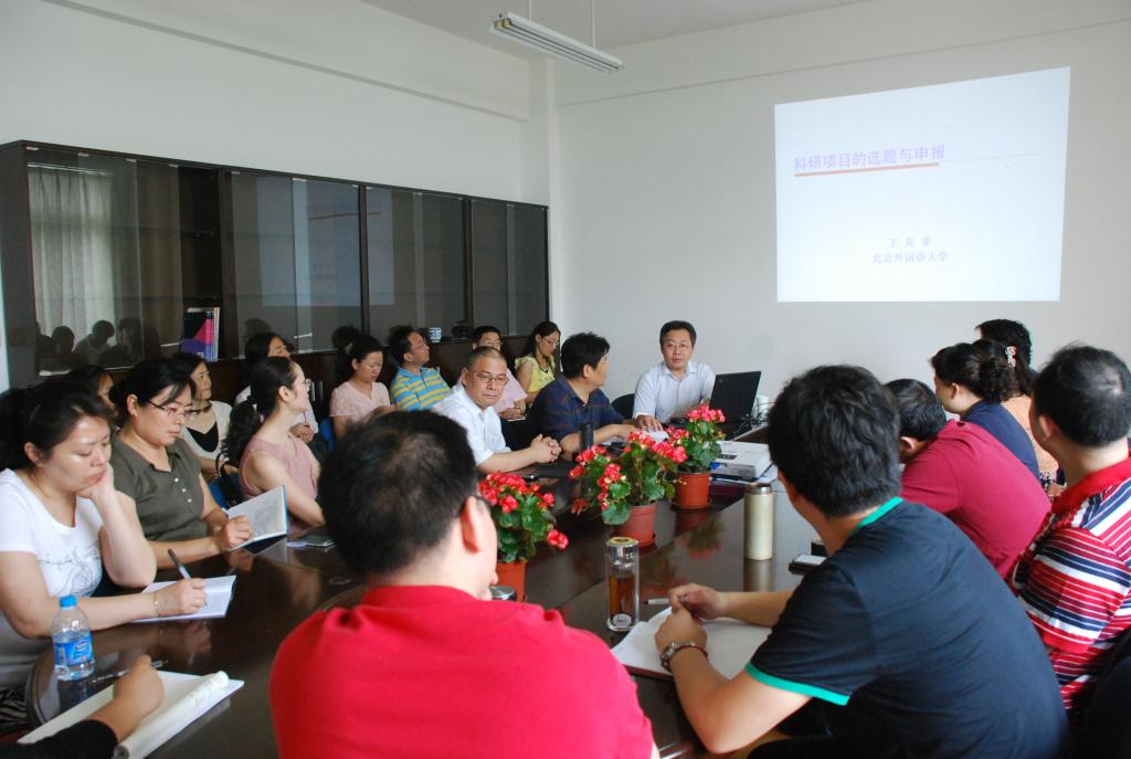 2012年6月14日,北京外国语大学语言所副所长王克非教授应新葡萄8883官网AMG官网邀请在外语楼208会议室作了题为“主要科研项目:申报与评审”的精彩讲座,受到新葡萄8883官网AMG官网师生的热烈欢迎。本次讲座由新葡萄8883官网AMG官网王振华教授主持。新葡萄8883官网AMG官网的部分老师、博士生和研究生聆听了这场精彩的讲座。此次讲座在师生中引起了广泛的关注,讲座现场座无虚席,很多同学和老师甚至站在门口或过道听完整场讲座。