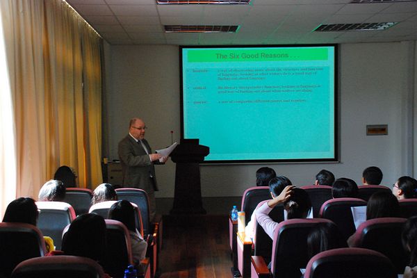 2012年10月24日,英国贝尔法斯特女王大学Paul Simpson教授应新葡萄8883官网AMG官网邀请在外语楼111室作了题为“Language and Literature: An Introduction to Stylistics”的精彩讲座,受到新葡萄8883官网AMG官网师生的热烈欢迎。本次讲座由新葡萄8883官网AMG官网副院长何伟文教授主持。新葡萄8883官网AMG官网的部分老师、博士生和硕士生聆听了此次讲座。