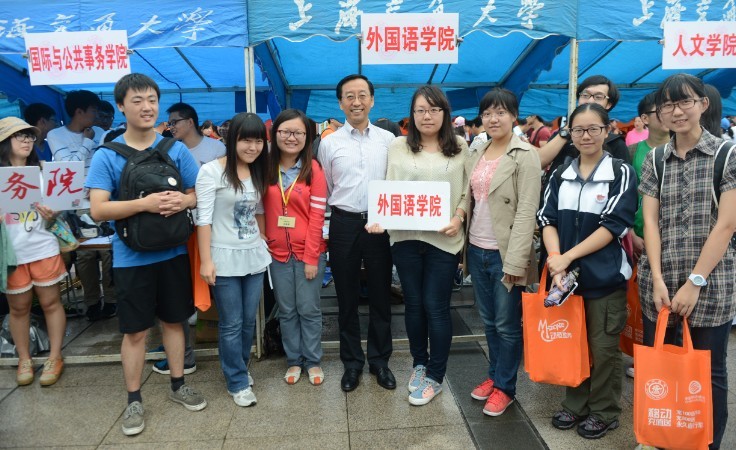 迎新当日,张杰校长亲切问候外院志愿者,并与志愿者合影留念,盛赞新生临时召集人的优秀表现。
