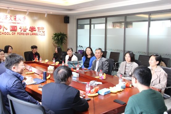 在主旨发言阶段,六位博士校友代表根据自己的研究方向,分别进行了交流。重庆大学的辜向东教授主讲了题目为《<语言测试>硕博共享双师型国际合作课程建设及其启示》的报告;南京师范大学倪传斌教授围绕人工智能,畅谈ChatGPT 与语言智能的发展;上海电力大学潘卫民教授围绕翻译方向,分享了《毛选》英译过程解读看中外译者合作的内容;华中科技大学的潘峰博士主讲Institutional translators' mediation of Chinese political discourse diachronically through personal pronouns: A corpus-based discourse analysis approach;上海海事大学郑松筠博士分享了关于扎迪·史密斯(Zadie Smith)《美》(On Beauty)中的历史书写的内容;同济大学万晓萌博士主讲了《大卫·华莱士作品的“城市病”书写》。
