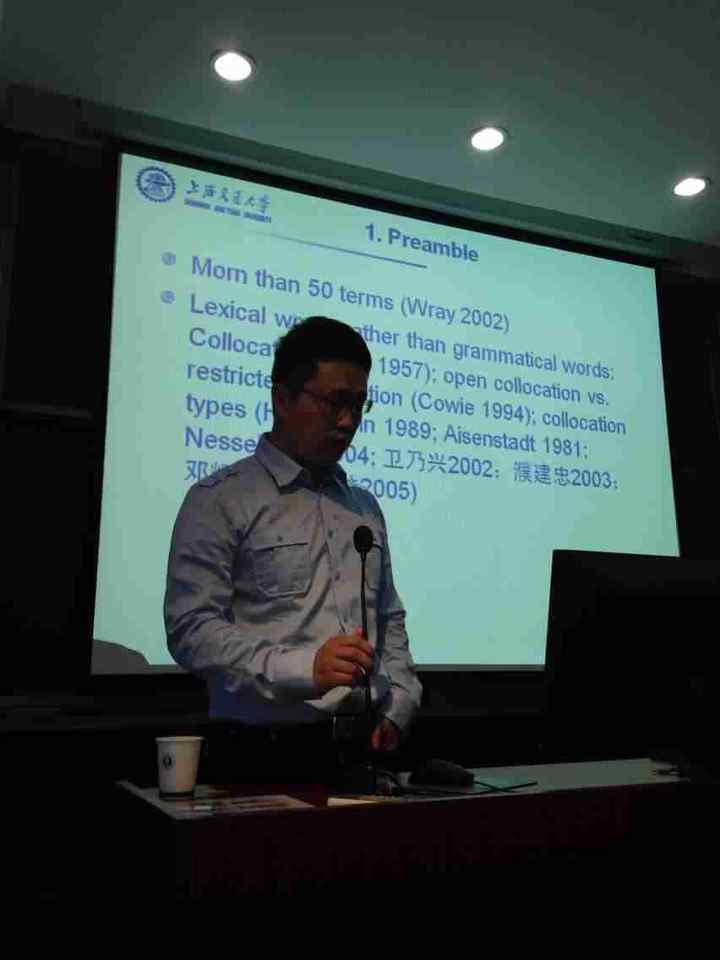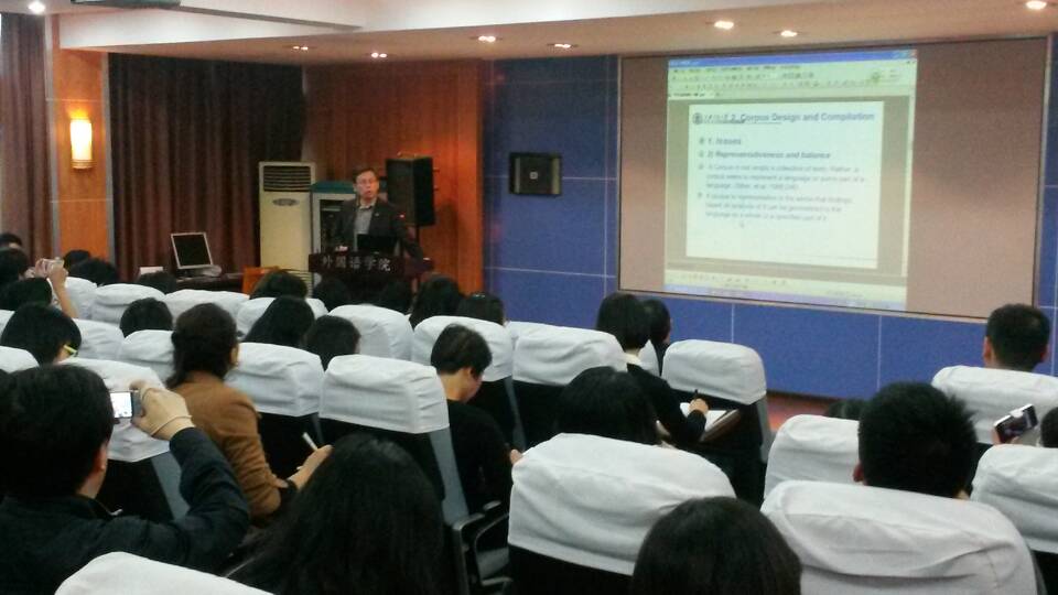 在此次大会上,胡开宝教授获邀分别组织了10月31日举行的特邀会前工作坊和11月1日下午举行的特邀专题研讨发言。在特邀会前工作坊上,胡开宝教授、甄凤超副教授和孟令子博士分别介绍了平行语料库的设计与建设、常用语料库软件的应用等内容。在特邀专题研讨上,由胡开宝教授做会议主持人,甄凤超副教授、陆元雯副教授、管新潮副编审和潘峰博士分别作了题为“基于语料库的学习者英语短语学研究:以介词of为例”、“基于语料库的英语论文摘要的语言特点研究”、“语料库在翻译实践中的作用”以及“基于语料库的汉英会议口译中模糊限制语的应用研究”的专项主题发言,发言引起了与会代表的浓厚兴趣与热烈反响。