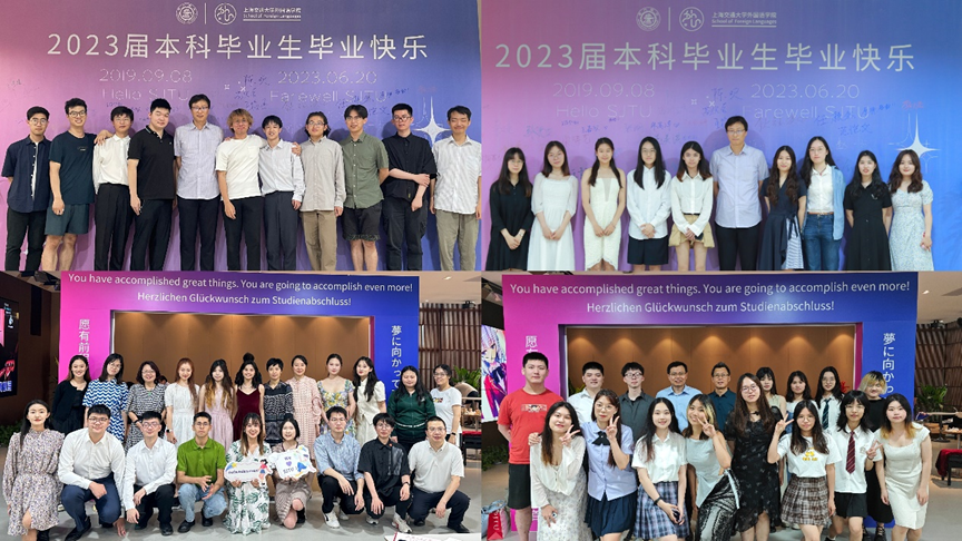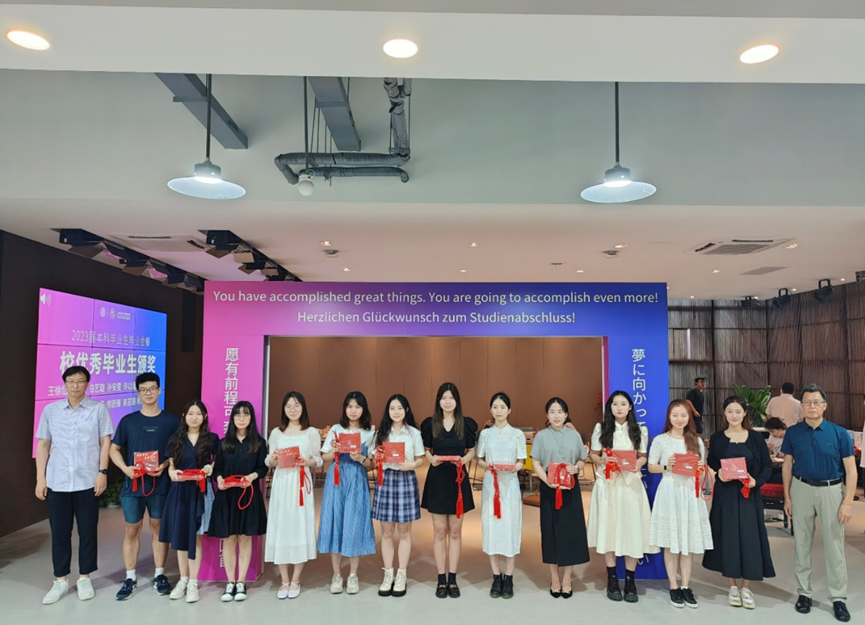 丁剑致开场辞,代表学院向圆满完成学业的毕业生们表示热烈祝贺,祝福同学们在未来的人生道路上行稳致远、续写华章。他表示,学院永远是值得信赖的坚强后盾,欢迎同学们在未来学习、工作之余常回“家”看看。副院长陶庆、日语系主任吴保华、德语系主任薛原分别发言,回顾毕业生四年来的成长点滴,希望同学们时刻牢记“饮水思源,爱国荣校”的校训和“交古通今,学贯中西”的院训,脚踏实地、心怀热忱地走向更高更远的未来。德语系薛松、范黎坤,校友工作负责人晁汐参加活动。
