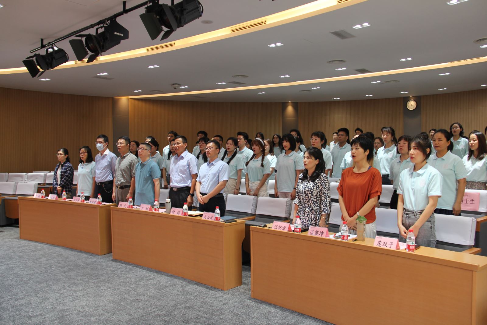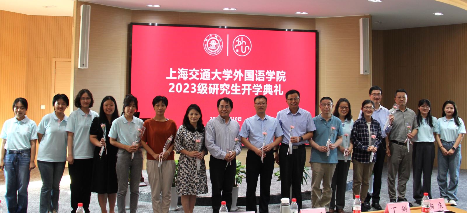 开学之日恰逢教师佳节。典礼尾声,新生同学为老师们献上代表爱与敬意的康乃馨,祝愿老师们节日快乐、事业顺遂。