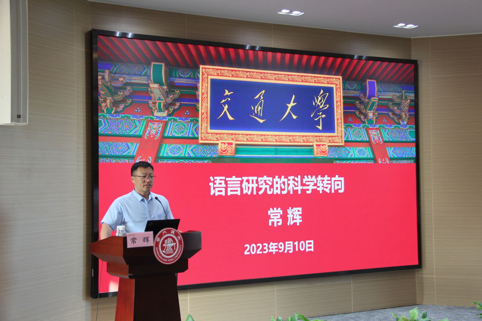 开学典礼后,常辉以“语言研究的科学转向”为题,为2023级研究生讲授入学教育“院长第一课”。他首先回顾了新葡萄8883官网AMG官网从南洋译书院到科技外语系一路走来的风雨兼程,再到如今师资济济、学术欣欣的外院以傲人的成就在最新一轮学科评估中斩获A+的历史里程碑。他将外院的成长归结为历代外语人“担当”的力量,并以“担当”二字回答了“外语是什么、怎么学、为什么学”的问题。他以语言在人工智能、生命健康等方面的融合应用,鼓励学生们打破传统束缚,聚焦“卡脖”领域,善用用活外院学术宝库、交叉机遇,围绕在“交古通今,学贯中西”的外院旗帜下,早日成长为理想远大、求真务实、可堪民族复兴重任的新时代青年才俊。