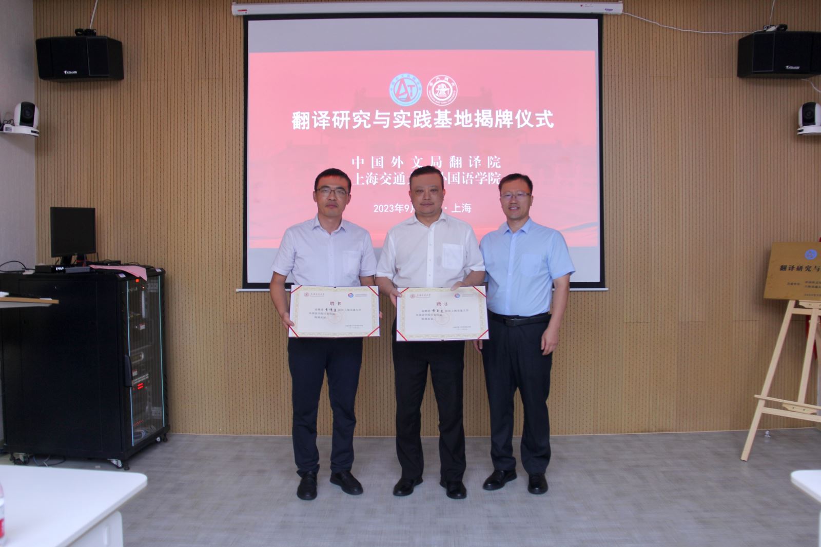 丁剑代表交大新葡萄8883官网AMG官网对黄玉龙院长一行表示热烈欢迎,对中国外文局翻译院长期以来对新葡萄8883官网AMG官网的支持表示感谢。他表示,学院高度重视和中国外文局翻译院的合作共建,期待以此次基地建设为契机,进一步深化双方交流合作。