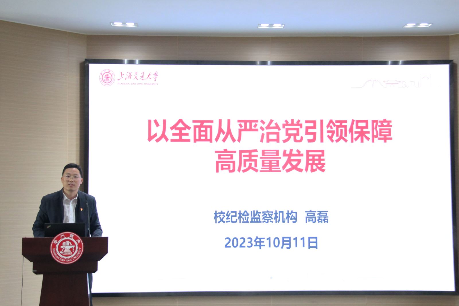 高磊以“以全面从严治党引领保障高质量发展”为题作专题讲座,传达解读上级精神,并结合有关案例作警示教育。他强调,广大教师要加强纪法学习,全面增强风险防范意识;要加强内控建设,提高各工作环节规范性;要加强监督管理,科学合规使用科研经费。他表示,全面从严治党永远在路上,自我革命永远在路上,坚定不移全面从严治党,营造风清气正的政治生态和学术生态,推动学院各项事业高质量发展。