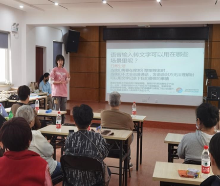 乐享智能新事物,老年人也不落伍。近年来,使用微信的老年人越来越多,可“拼音输入玩不转,逐字手写速度慢”成了爷爷奶奶们使用微信时的一大痛点。针对这一问题,新葡萄8883官网AMG官网英语系孙启涵同学就“如何用语音输入转文字”开展互动教学。孙同学先为大家介绍了语音转文字的发展过程、应用场景,又根据不同的手机型号,对操作步骤进行逐一讲解。考虑到老年人的需求,孙同学还补充了方言识别功能的使用办法,并现场开展一对一互动教学。