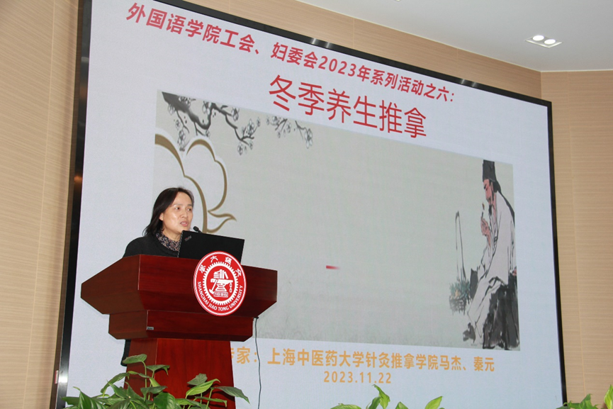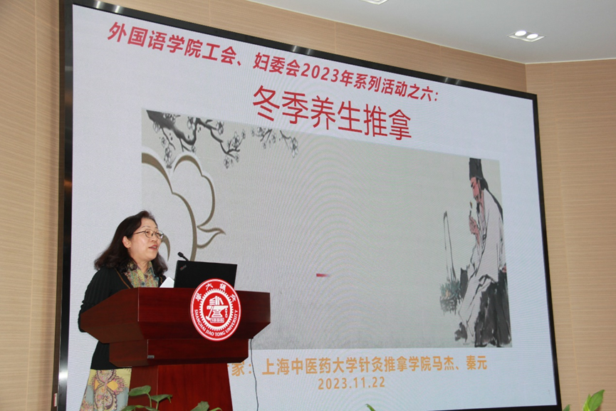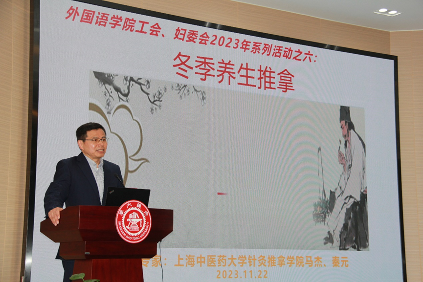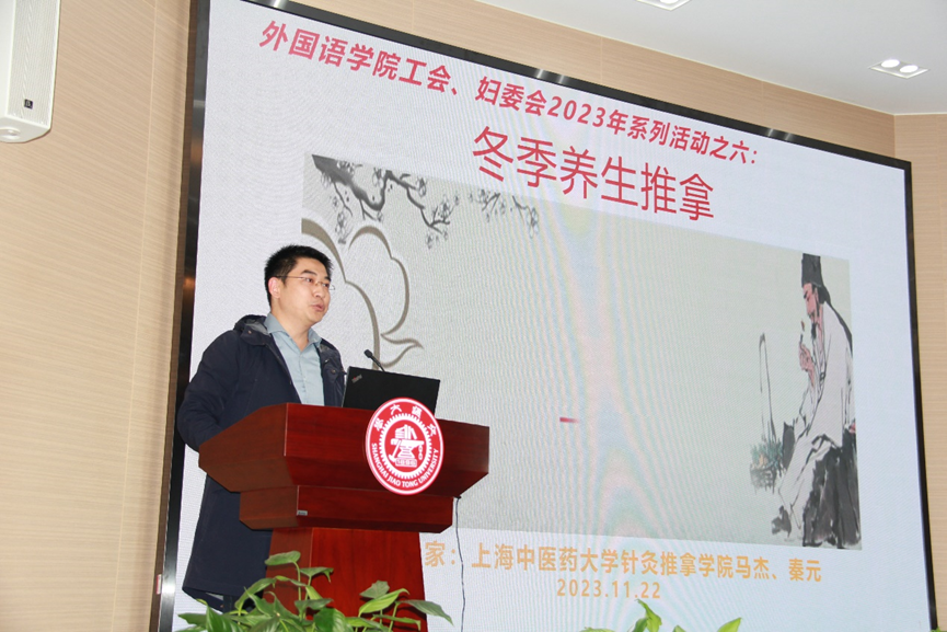 为进一步做好外院教职工健康保健工作,提高教职工健康知识水平和促进教职工身心健康,新葡萄8883官网AMG官网工会、妇委会特邀上海中医药大学针灸推拿学院师生,于11月22日在新葡萄8883官网AMG官网举办了 “冬季养生推拿”健康活动。活动由新葡萄8883官网AMG官网女工委员金文峰主持。