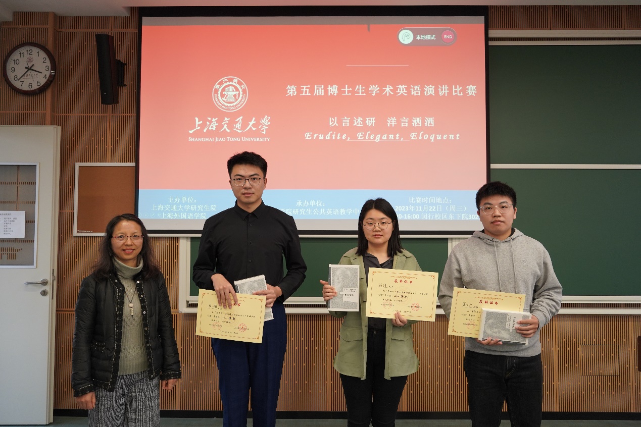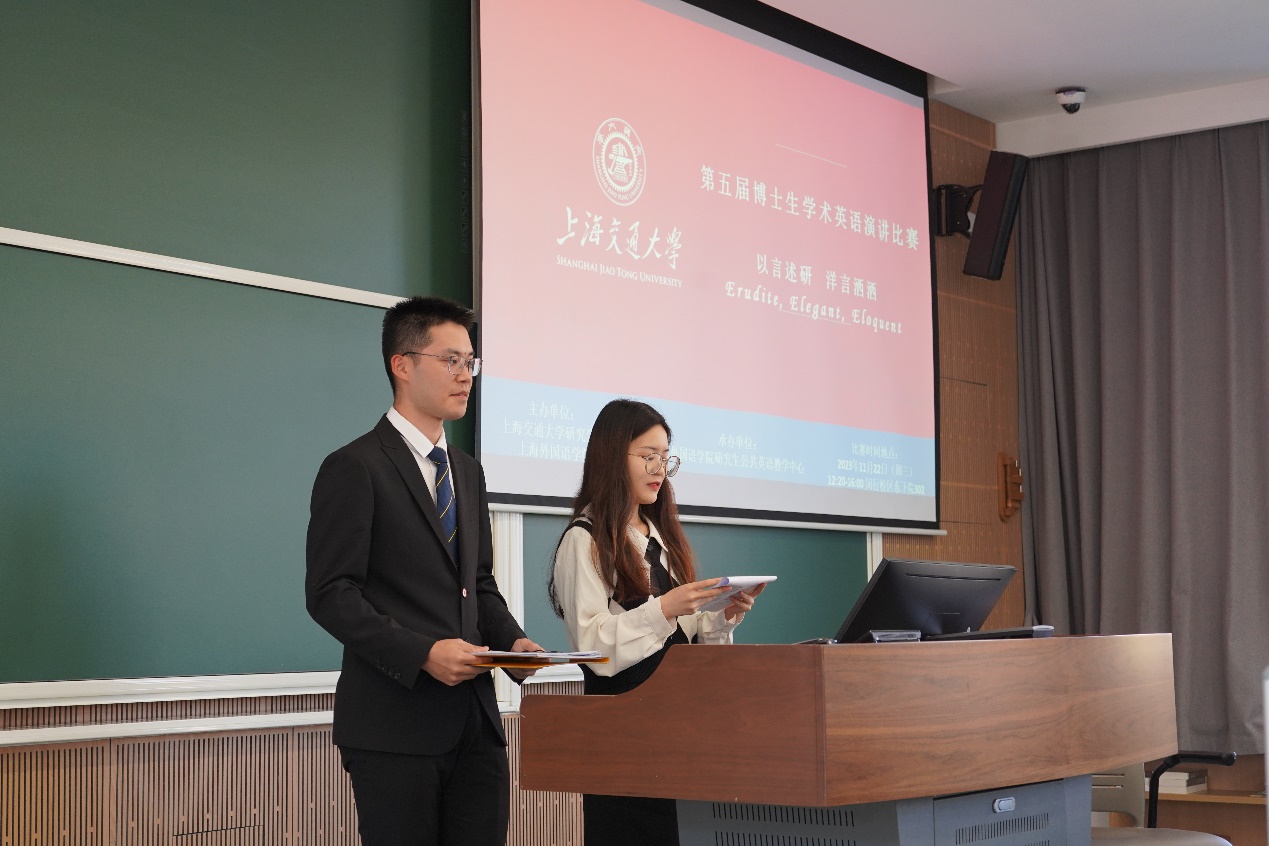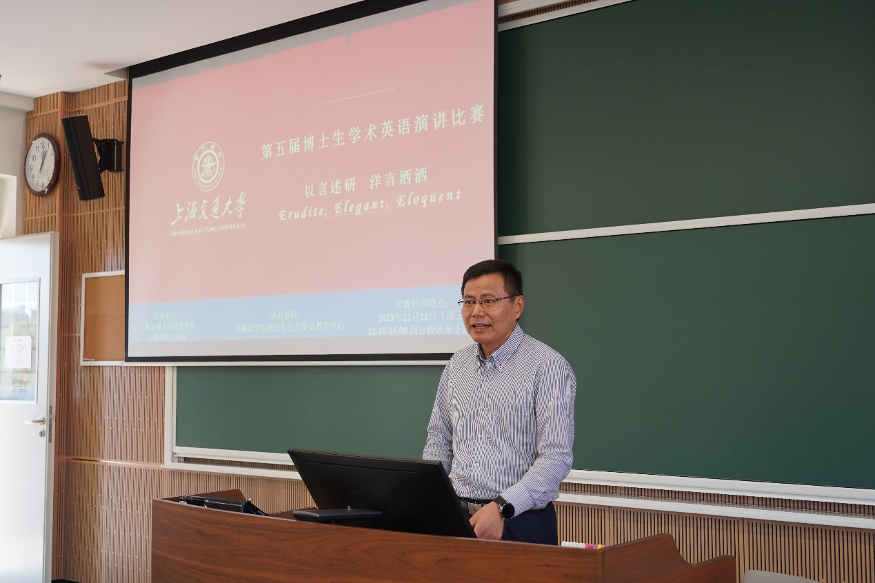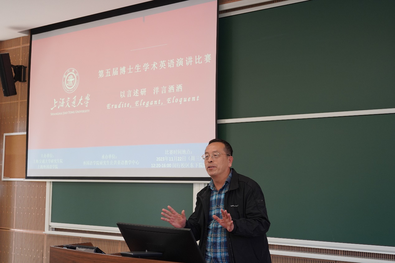 2023年11月22日下午,“第五届新葡萄8883官网AMG官网博士生学术英语演讲比赛”在闵行校区东下院302室举行。本次演讲比赛由研究生院与新葡萄8883官网AMG官网主办,新葡萄8883官网AMG官网研究生公共英语教学中心承办。新葡萄8883官网AMG官网党委书记丁剑、新葡萄8883官网AMG官网研究生公共英语教学中心主任李宏德、副主任杨晓红出席了比赛现场。