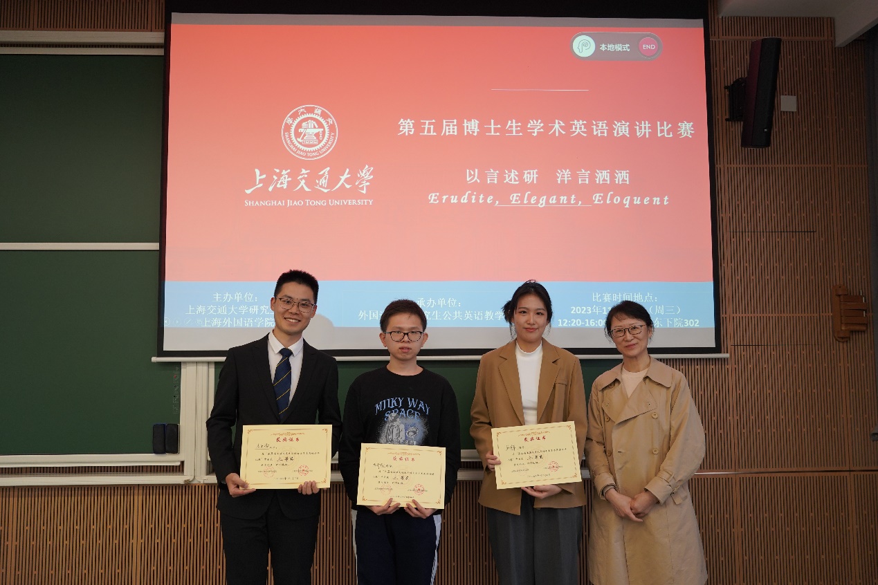 另外,11月15日下午举行了我校第四届硕士生学术英语演讲比赛。来自化学化工学院的马译同学获得一等奖,来自凯原法学院的袁悦、软件学院的韦未雨、以及智慧能源创新学院的刘澳等三位同学获得二等奖。