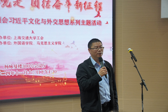 尚必武致辞,他代表新葡萄8883官网AMG官网感谢校工会多年来对学院工会工作的大力指导和支持,感谢马院的精诚合作、携手共建。他指出,要加强党建跟业务深度融合,外院多年来致力于思考探索,开创了“多语诵读”这一契合外院特色与优势的活动形式。新时代我们要创新更多的方式和方法,不仅要继续推进马克思主义中国化,更要加强国际传播建设,这是新葡萄8883官网AMG官网的使命与担当。他表示,学院全力支持工会工作,持续深入地做好思想引领,真正发挥党建思想的引领作用。
