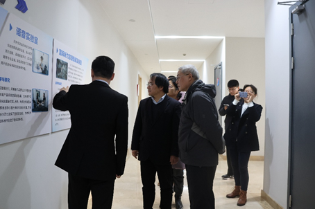 活动伊始,尚必武向吴旦一行介绍并实地参观了智能外语实验教学示范中心,重点参观了国际听力仿真实验室、语音实验室、认知行为实验室、脑电实验室和眼动实验室等多个实验室,详细介绍了各实验室的设备与研究方向。