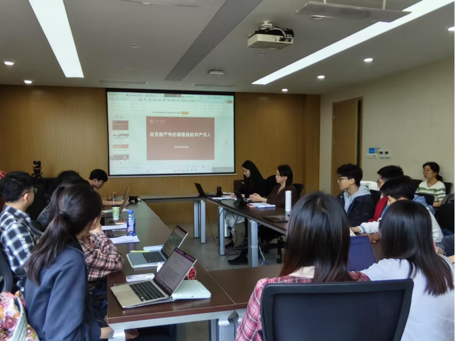 为巩固深化党纪学习教育成果,强化党员作风建设,2025年4月29日,新葡萄8883官网AMG官网本科生联合党支部在杨咏曼楼224会议室开展“学习贯彻八项规定精神”专题学习,活动由党支部书记苏鏐鏐主持。