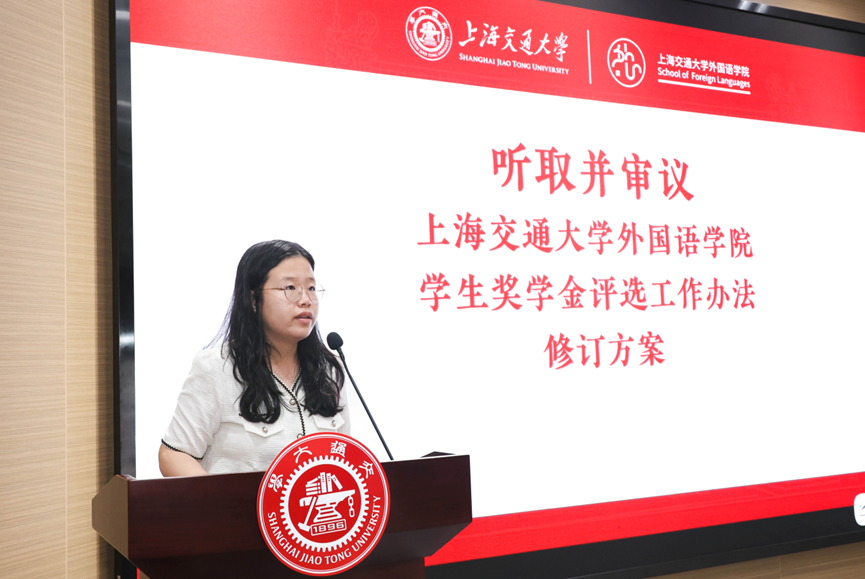 学院团委工作负责人陈嘉翌向大会通报学院学生奖学金评选工作办法修订方案,方案获大会表决通过。