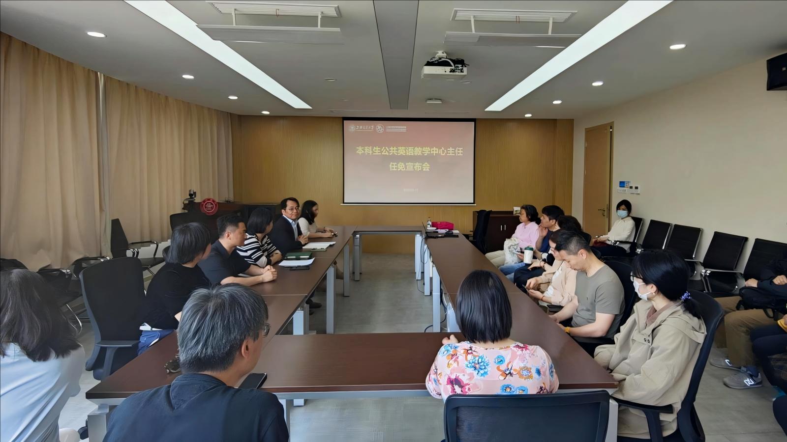 会上,朱一凡宣读了学院党委关于本科生公共英语教学中心主任任免的决定,宣布任命江妍为本科生公共英语教学中心主任,同时免去郇昌鹏的本科生公共英语教学中心主任职务。